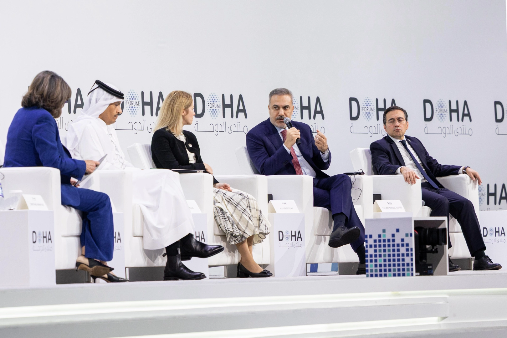 Dışişleri Bakanı Hakan Fidan, Katar’ın başkenti Doha’da düzenlenen 23’üncü Doha Forumu kapsamında, ‘Parçalanma Çağında Arabuluculuk’ başlıklı açılış oturumuna katıldı. Oturumda konuşma yapan Bakan Fidan, Türkiye’nin, Suriye'deki kriz başladığında açık kapı politikasını benimsediğini belirtti. Çok sayıda Suriyelinin savaştan kaçarak Türkiye’nin sınır kapılarına geldiğini kaydeden Fidan, “Bu politikamız insani hedeflere hizmet etmiş oldu. Ukrayna'da, Gazze’de, Suriye’de artık işler yoluna giriyor gibi görünüyor ancak şu anda ara buluculuk ve barış inşası faaliyetleri kapsamında Trump’ın yapmak istedikleri, Türkiye’nin çıkarlarıyla örtüşüyor. Biz en başta Ukrayna'da bir ateşkes istedik, Gazze’de ateşkes istedik, Suriye’de uluslararası iş birliği istedik, istikrarın sağlanabilmesi için çünkü son 10 yıldır mülteci krizinden çok ağır dersler çıkardık. Bölgemizde yaşanan sorunlara ara buluculuk yaparak aslında özellikle mülteci krizi kapsamında insanların yaşadığı acıları hafifletmiş olduk” ifadelerini kullandı.