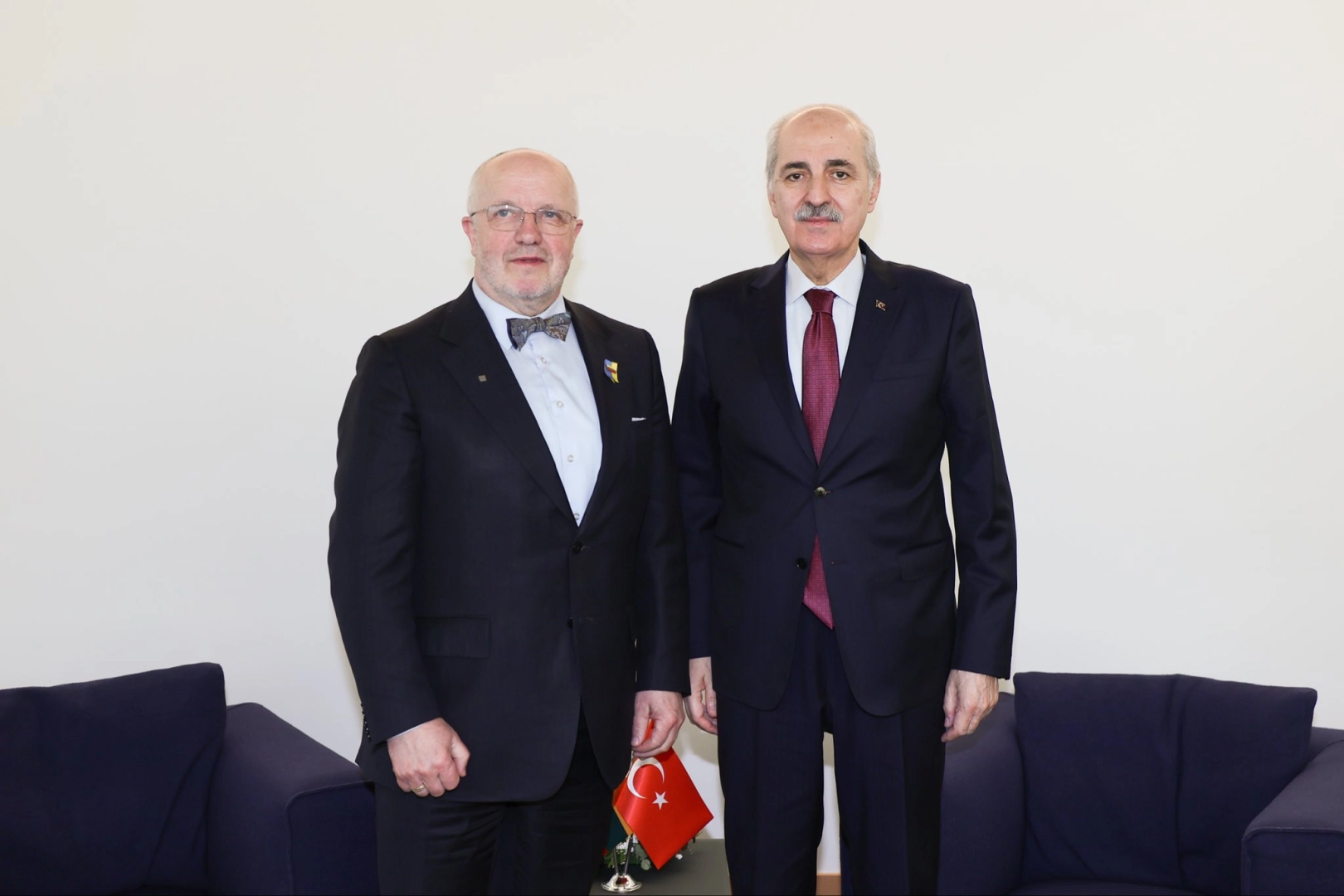 Türkiye Büyük Millet Meclisi (TBMM) Başkanı Numan Kurtulmuş, ‘Üç Deniz Girişimi Parlamenter Zirvesi’ne katılmak üzere bulunduğu Hırvatistan’ın başkenti Zagreb’de, Litvanya Meclis Başkanı Juozas Olekas ile görüştü. Zagreb Ulusal ve Üniversite Kütüphanesi’nde gerçekleşen görüşmede, Kurtulmuş, Türkiye ve Litvanya hükümetleri arasında var olan olumlu ilişkilerin ilerlemesinden memnuniyet duyduklarını belirterek, iki ülke arasındaki iş birliğine katkı sunmak amacıyla parlamentolar arasındaki ilişkileri de ilerletmek gerektiğini vurguladı.