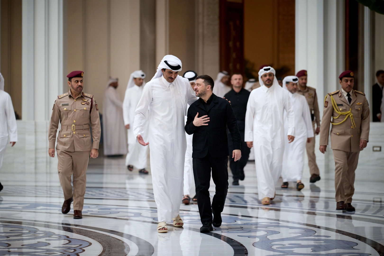 Ukrayna Devlet Başkanı Volodimir Zelenskiy, Katar'daki temaslarına ilişkin sanal medya hesabından bir paylaşım yaptı. Doha'da Katar Emiri Şeyh Temim bin Hamed Al Sani ve Başbakan Şeyh Muhammed bin Abdurrahman Al Sani ile bir araya geldiğini belirten Zelenskiy, “Her iki ülkede de can güvenliğini daha da güçlendirebilecek konuları ele aldık ve savunma sektöründe en az 10 yıl sürecek, karşılıklı faydaya dayalı bir ortaklık üzerinde anlaştık. Genelkurmay Başkanlarımız; ortak savunma sanayi projelerini, ortak üretim tesislerinin kurulmasını ve şirketler arası teknolojik ortaklıkları öngören bir anlaşma imzaladı” ifadelerini kullandı.
