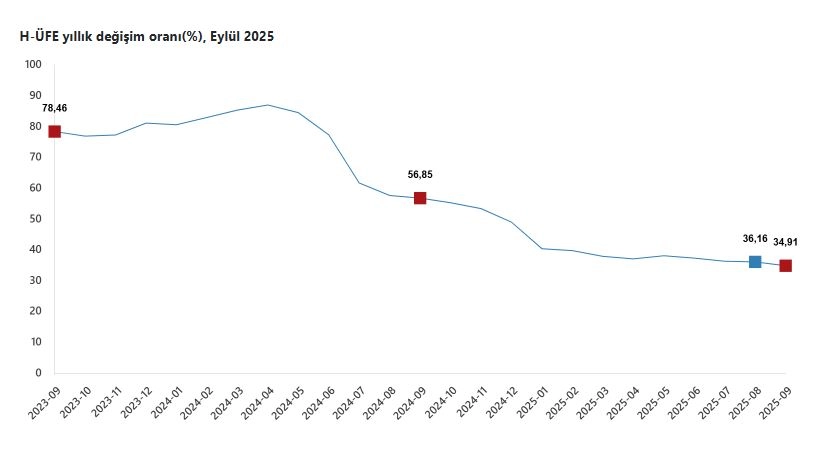 TÜİK, Eylül 2025 dönemine ilişkin hizmet üretici fiyat endeksi verilerini açıkladı. Buna göre; hizmet üretici fiyatları, eylül ayında bir önceki aya göre 0,21, bir önceki yılın aralık ayına göre yüzde 34,76, bir önceki yılın aynı ayına göre yüzde 34,91 ve 12 aylık ortalamalara göre yüzde 40,43 arttı.