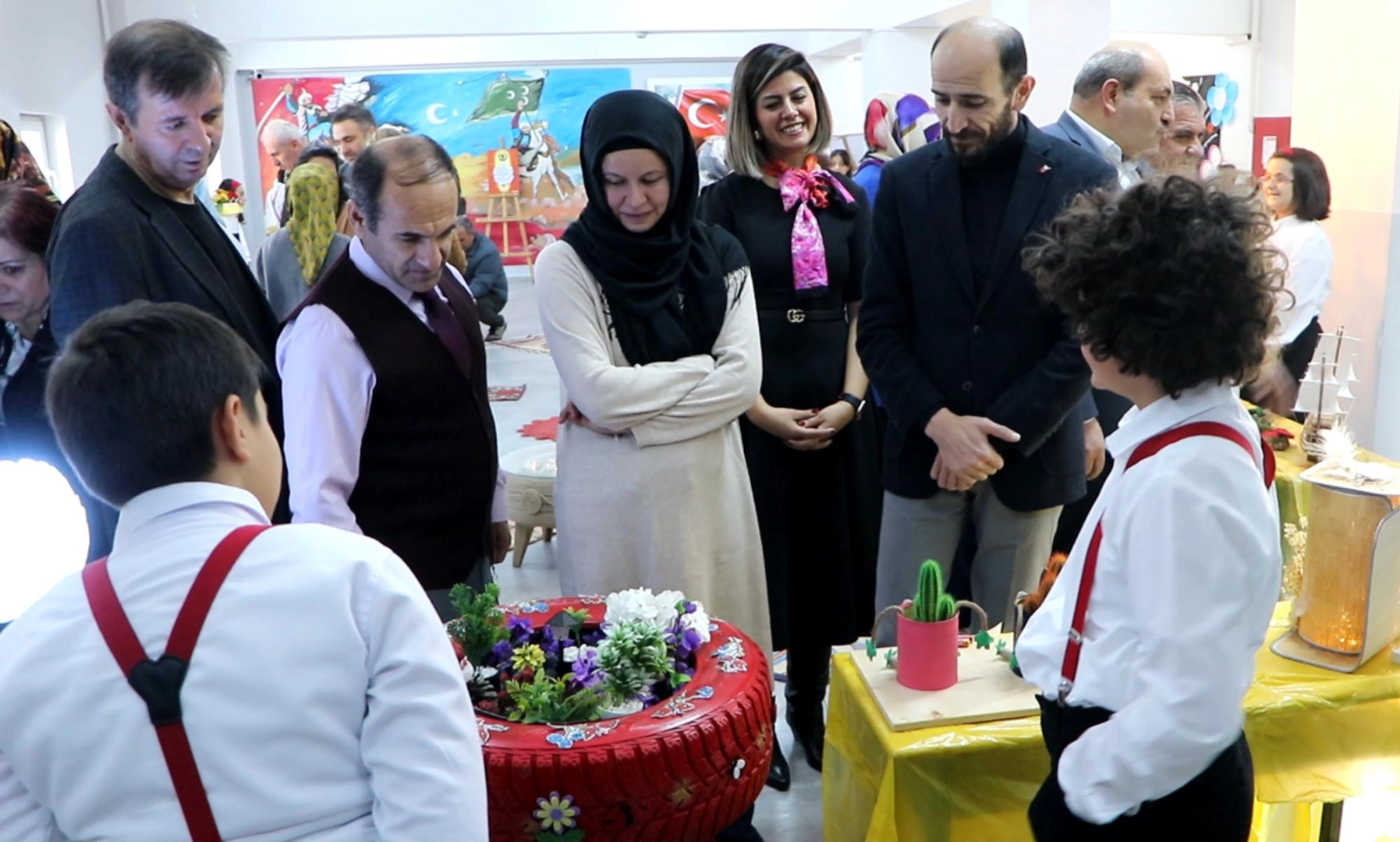 4’üncü sınıf öğrencileri dönüşüme dikkat çekti; pet bardaklar kardan adam, lavabo boruları bisiklet oldu / Ek fotoğraflar