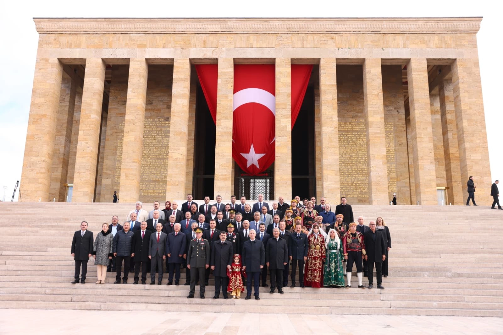 Ruken KADIOĞLU-Celal ATALAY/ANKARA, (DHA)- ANKARA'nın başkent oluşunun 102'nci yıl dönümü etkinlikleri kapsamında, Ankara Valisi Vasip Şahin başkanlığındaki heyet, Anıtkabir'i ziyaret etti.Ankara Valisi Vasip Şahin ile beraberindeki 4'üncü Kolordu ve Ankara Garnizon Komutanı Tümgeneral Ahmet Kurumahmut, Ankara Büyükşehir Belediye Başkanı Mansur Yavaş, Ankara Cumhuriyet Başsavcısı Gökhan Karaköse ile Ankara İl Emniyet Müdürü Engin Dinç ve il protokolü, Ankara'nın başkent oluşunun 102'nci yılı kutlamaları kapsamında Anıtkabir'i ziyaret etti. Şahin başkanlığındaki heyet, Aslanlı Yol'dan yürüyerek Atatürk'ün mozolesine geldi. Vasip Şahin'in mozoleye çelenk bırakmasının ardından saygı duruşunda bulunuldu, İstiklal Marşı okundu.Daha sonra Misak-ı Milli Kulesi'ne geçen Vali Şahin, Anıtkabir Özel Defteri'ni imzalayarak, şunları kaydetti:"Aziz Atatürk, milletimizin tarihte var olma mücadelesinde sevk ve idare merkezi olarak seçilen Ankara'nın, yeni devletimizin kuruluş sürecinde başkent ilan edilişinin 102'nci yıl dönümünde şükran duygularımızla huzurunuzdayız. Ankara, Milli Mücadele yıllarında gösterdiği dirayet, kararlılık ve fedakarlıkla milletimizin yeniden varoluşunun simgesi haline gelmiştir. Türkiye Büyük Millet Meclisi tarafından alınan, tarihi derinliğe sahip bir karar neticesinde Ankara'nın başkent olarak ilan edilmesi; yalnızca bir idari düzenleme değil, aynı zamanda milletimizin hür iradesinin, istiklal ülküsünün ve muasır medeniyet yolunda kararlı ilerleyişinin simgesi olmuştur. İstikbale yolculuğumuzun yön bulduğu bu kadim şehir, köklü kültürel mirası ve gelecek vizyonuyla bugün de ülkemizin başkenti ve bir medeniyet merkezidir. Ankara il yöneticileri olarak inancımız odur ki, başkentimiz bundan sonra da Türkiye'nin kalkınma hamlelerinde öncü, milletimizin değerlerini yücelten bir rehber şehir olmaya devam edecektir. Türk milleti, size; aziz şehitlerimize ve kahraman gazilerimize minnettardır. Ruhunuz şad olsun." (DHA)