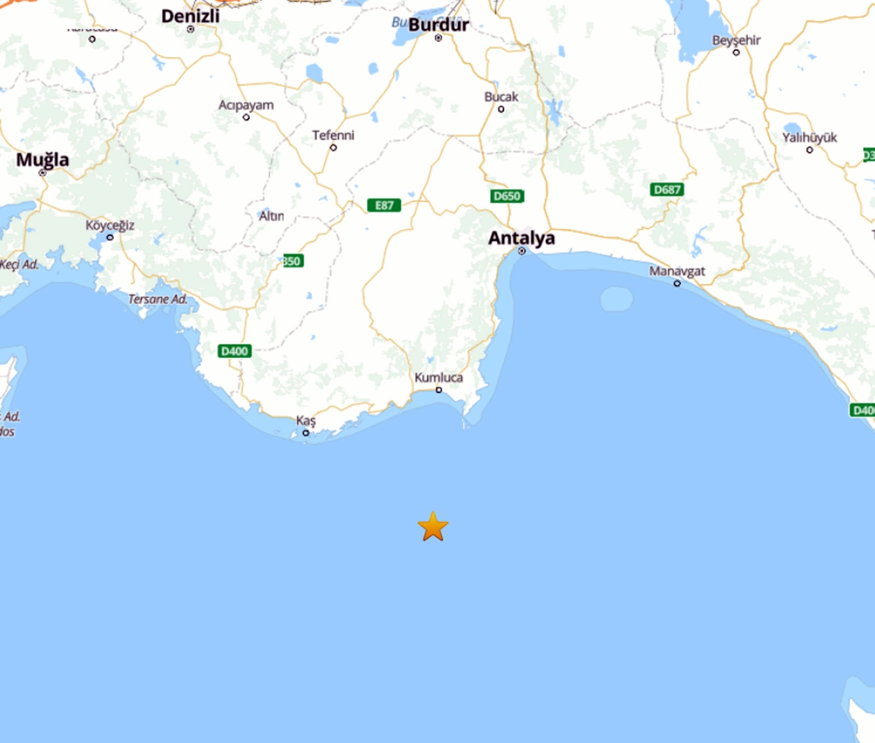 ANTALYA, (DHA)- AKDENİZ'de Antalya’nın Demre ilçesi açıklarında Richter ölçeğine göre 4.7 büyüklüğünde deprem meydana geldi.