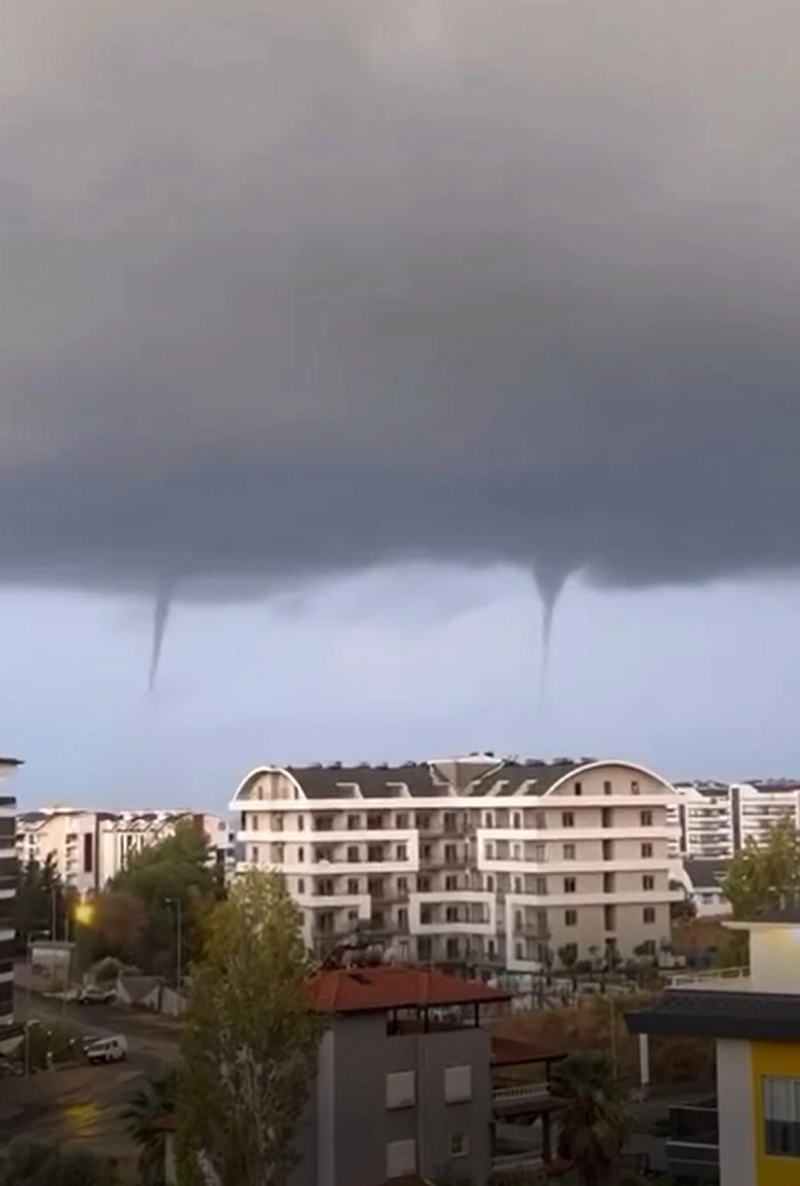 Alanya'da saat 08.30 sıralarında Avsallar Mahallesi'nde denizde 2 hortum çıktı. Bazı vatandaşların cep telefonu kamerasıyla kaydettiği hortumlar karaya ulaşmadan etkisini yitirdi.