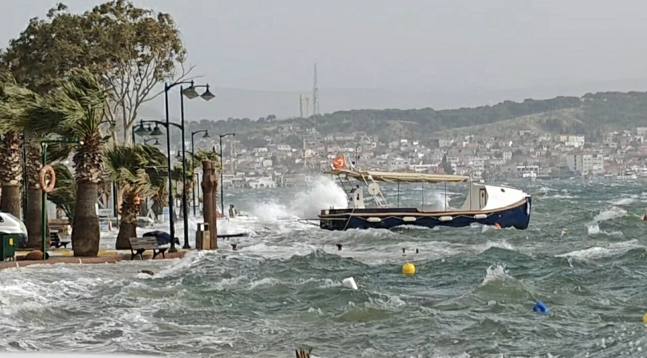 Ayvalık'ta bugün öğle saatlerinde fırtına çıktı. Zaman zaman etkisini arttıran fırtına, sahil kesimlerinde özellikle Cunda Adası'nda yaşamı olumsuz etkiledi. Fırtına nedeniyle dalgalar sahili dövdü. Cunda Adası'nda güneyli yönlerden esen ve hızı zaman zaman 90 kilometreye ulaşan fırtına nedeniyle taşan deniz suyu sahilin hemen arkasındaki sokaklara kadar ulaştı. Dolan sular sokakları geçişe kapattı. (DHA)