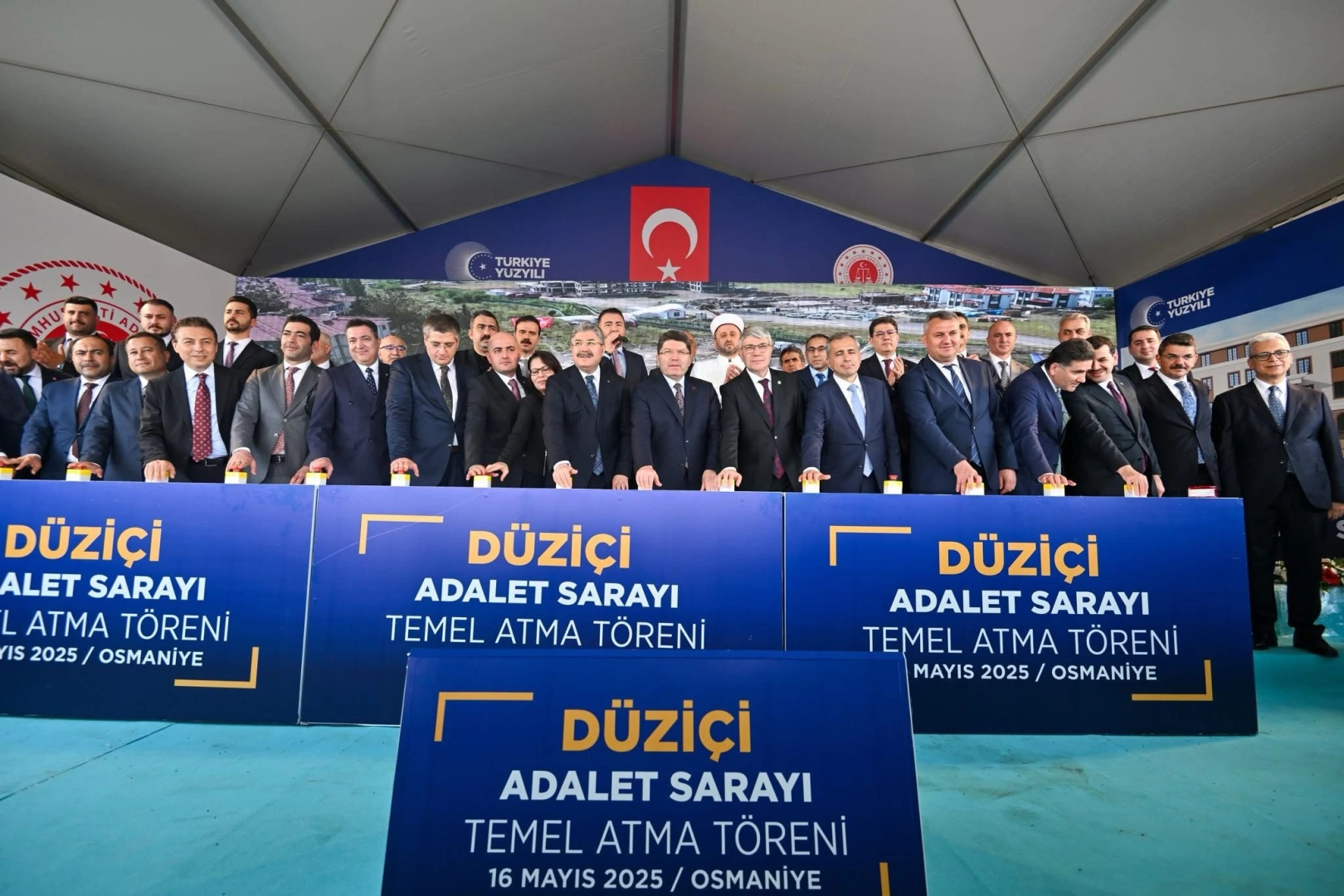 OSMANİYE'DE TEMEL ATMA TÖRENİNE KATILDIAdalet Bakanı Yılmaz Tunç, Hatay'daki törenin ardından Osmaniye'ye geçti. Bakan Tunç, Osmaniye'nin Düziçi ilçesinde yeni adalet sarayının temel atma törenine katıldı. Düziçi’nde inşa edilecek yeni adalet sarayının teknik altyapısı güçlü, depreme dayanıklı ve modern bir yapı olacağını ifade eden Tunç, 5 bin 980 metrekare kapalı kullanım alanına sahip olacağını söyledi. 18 hakim ve Cumhuriyet savcısı odası, 5 duruşma salonu, icra müdürlüğü ve ilçe seçim müdürlüğü yer alacak binanın temel atma töreninde konuşan Bakan Tunç, “Deprem bölgesindeki tüm illerimizi inşa, imar ve ihya etmek için çalışmalarımıza kesintisiz devam ediyoruz. Düziçi Adalet Binamızın şimdiden adalet teşkilatımıza, yargı camiamıza, ilçemize, şehrimize ve ülkemize hayırlı olmasını diliyorum" dedi. (DHA)Kamil ŞEKER/ DÜZİÇİ (Osmaniye), (DHA)