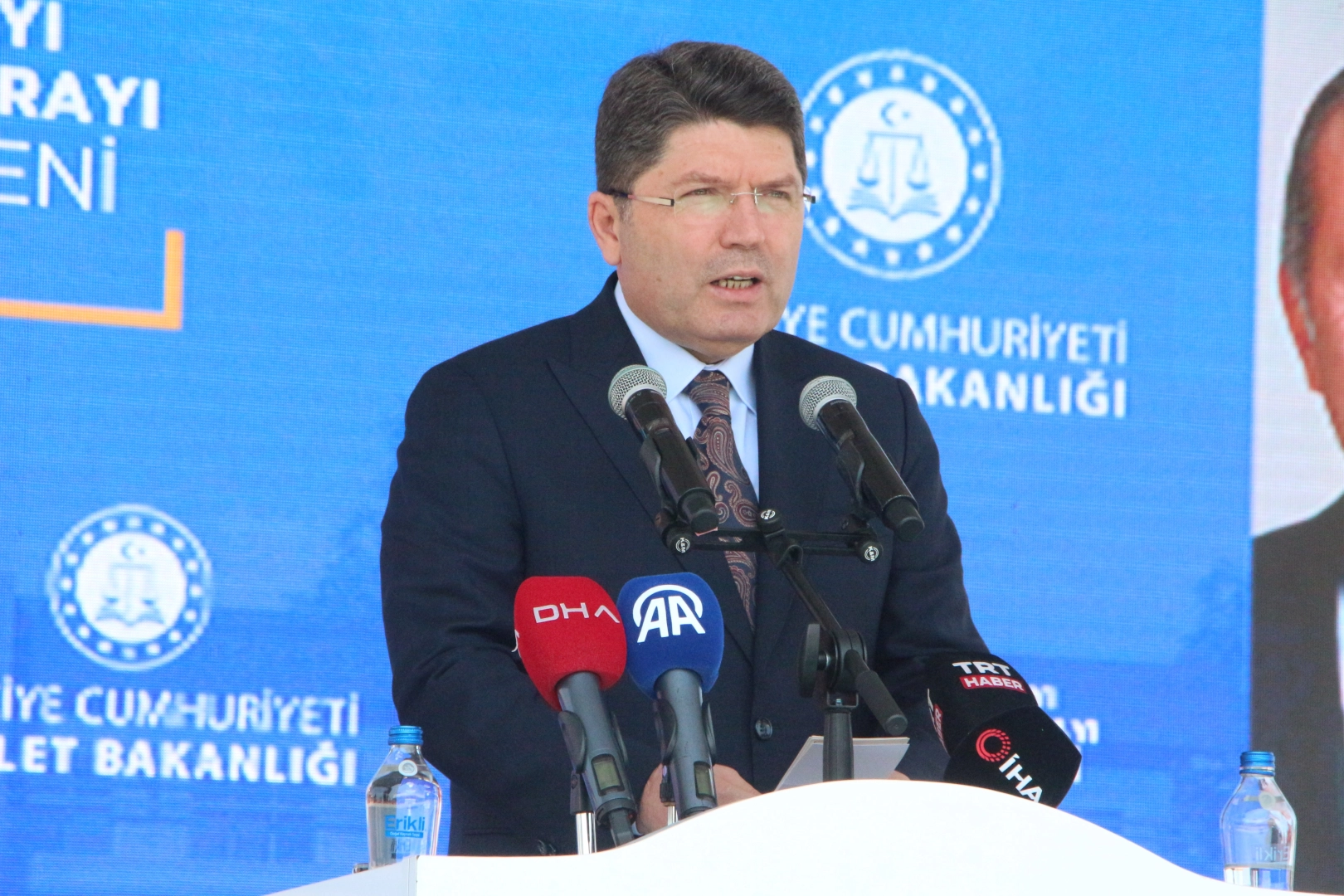 Yusuf YILDIZ-Eser PAZARBAŞI/HATAY, (DHA)- ADALET Bakanı Yılmaz Tunç, "Milletimizin huzuru ve çocuklarımızın daha güvenli bir geleceğe kavuşması için terörsüz Türkiye hedefiyle kararlılıkla yolumuza devam edeceğiz" dedi.Adalet Bakanı Yılmaz Tunç, Erzin ve Samandağ ilçelerine yapılacak adalet saraylarının temel atma töreni için Hatay’a geldi. Erzin ilçesinde düzenlenen törene, Hatay Valisi Mustafa Masatlı, AK Parti Hatay milletvekilleri Kemal Karahan ve Hüseyin Yayman ile kent protokolü katıldı. Bakan Tunç, 6 Şubat depremlerinden bu yana açılan davaların yüzde 75'inin tamamlandığını belirterek, "Deprem bölgesinde idari yargıda toplam 109 bin 477 dava açıldı. Bu oldukça önemli bir sayı. Aldığımız tedbirler sayesinde bu davaların yaklaşık yüzde 75’i, yani 75 bin 975’i karara bağlandı. Bu neden önemli? Çünkü bazı vatandaşlarımız, 'Binam ağır hasarlı değil, yıkılmasını istemiyorum' ya da 'Binam hasarlı, yıkılması gerekiyor, güvende değilim' diyerek tereddütlerini dile getiriyor. Önceki tespitlerin aceleyle yapılmış ve hatalı olabileceğini düşünen vatandaşlarımız doğal olarak yargıya başvuruyor. Açılan davalarda yeniden keşif, bilirkişi incelemeleri gibi detaylı yargı süreçleri işletiliyor. Bu süreç sonucunda 109 bin 477 davadan 75 bin 975’i karara bağlandı. Eğer yıkılması gerekiyorsa yıkım gerçekleştiriliyor; yıkılmaması gerekiyorsa vatandaşımız güvenle binasına yerleşebiliyor. Öte yandan, sadece ağır hasar tespiti ve yıkımla ilgili olarak 11 ilde açılan 41 bin 981 davanın 37 bin 291’i, yani yüzde 89’u sonuçlandırıldı. Kalan davaların da hızlıca sonuçlandırılması için çalışmalarımız sürüyor" dedi.'HATAYI AFETLERE DİRENÇLİ BİR ŞEHİR HALİNE GETİRECEĞİZ'Bakan Tunç, Hatay’ın daha güçlü, daha kaliteli ve afetlere dirençli bir şehir hale getirilmesi için çalıştıklarını aktardı. Tunç, “'Adalet, mülkün temelidir' diyoruz. Adalet, toplumsal barışın ve huzurun teminatıdır. Adalet, herkese hakkı olanı vermek, hakkın sesini duyurabilmektir. Bu adaletin tecellisi için görev yapan tarafsız ve bağımsız yargımızın; hakimin, savcının, savunmayı temsil eden avukatlarımızın ve yargı hizmeti alan vatandaşlarımızın adaletin vakarına uygun binalarda hizmet alması gerekir. İşte bu yüzden, içinde saray olmamasına rağmen bu yapılara 'adalet sarayı' deniyor. Bugün de Erzin ve Samandağ’da inşa edilecek adalet binalarının mimari projelerine baktığımızda, bölgelere yakışacak güzellikte yapılar olduğunu görüyoruz. İnşallah bu güzel hizmet binalarını bölgemize kazandıracağız. Bulunduğumuz bölge, güzel bir kamu kampüsüne dönüşüyor. Karşımızda hükümet konağı, emniyet binası, Bunların tamamı deprem sonrasında inşa edilen yapılar. Böylece Hatay'ımızın tüm ilçelerinde kamu binaları yenilenmiş oluyor. Bu fırsatı en iyi şekilde değerlendirerek, şehirlerimizi eskisinden daha kaliteli, daha güçlü ve afetlere karşı daha dirençli hale getirmiş olacağız” diye konuştu.'BU YÜRÜYÜŞÜN ÖNÜNDE KİMSE DURAMAYACAK'Adalet Bakanı Yılmaz Tunç, Türkiye’nin çok kritik bir dönemden geçtiğini belirterek, şöyle devam etti:“Bazı televizyon kanallarında, ceza, adalet sistemiyle ilgili olarak hazırlamış olduğumuz taslak hakkında dezenformasyon amaçlı paylaşımlar yapılmaktadır. Bu tür iddialara kesinlikle inanmayın. Örneğin, '8 yıl ceza alan biriyle aynı anda tahliye olacakmış' deniliyor, böyle bir şey yok. '12 yıl ceza alan biri 9 ayda çıkacakmış', bu da tamamen asılsız. Bu tür iddialar nereden çıkarılıyor, anlamak mümkün değil. Özellikle infaz sistemiyle ilgili olarak toplumdan ve uygulamadan gelen talepler doğrultusunda bazı düzenleme hazırlıklarımız var. Ancak bu düzenlemeleri karalamaya, vatandaşta yanlış algı yaratmaya ve halkı yanıltıcı bilgilerle provoke etmeye yönelik yayınlar yapılmaktadır. Bu tür yayınlara kesinlikle itibar etmeyiniz. Biz, milletimiz için ne gerekiyorsa onu yapacağız. Ülkemizin huzuru ve güvenliği için çok kritik bir noktadayız. İnşallah, milletimizin huzuru ve çocuklarımızın daha güvenli bir geleceğe kavuşması için Terörsüz Türkiye hedefiyle kararlılıkla yolumuza devam edeceğiz. 40 yıldır ülkemizi sıkıntıya sokan, gelişmemizi ve kalkınmamızı engelleyen terörle mücadelede tarihi bir eşikteyiz. Sayın Bahçeli'nin Ahlat'ta yaptığı iç cephe vurgusunun ardından grup konuşmasında yaptığı çağrı ve sonrasındaki çabalar, terör örgütünün kendini feshetmesiyle sonuçlandı. Bu süreçten sonra hepimize büyük sorumluluklar düşüyor. Millet olarak birlik ve beraberliğimizi daha da kuvvetlendirerek yolumuza devam edeceğiz. Etnik kökeni ne olursa olsun, hepimiz kardeşiz. Bu kardeşliğimizi güçlendirerek, Türkiye’yi dünyanın en güçlü ülkelerinden biri haline getireceğiz. Bu yürüyüşün önünde kimse duramayacak. Özellikle kullandığımız dil ve ifadeler bakımından herkese çok önemli görevler düşüyor. Bu süreci zehirleyecek bir dil kullananlara prim vermeyeceğiz. Bu süreci sabote etmek isteyenlere karşı uyanık olacağız."Konuşmasının ardından Tunç, telekonferans yoluyla Samandağ ilçesine bağlanarak adalet saraylarının temelini attı. (DHA)