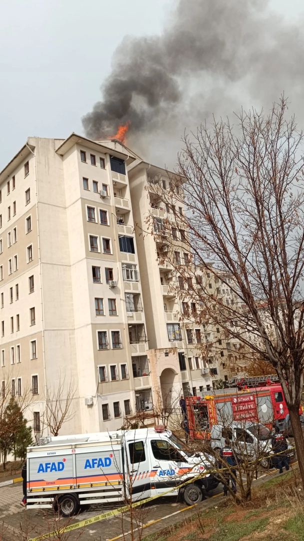 Bayram AYHAN/BATMAN, (DHA)-BATMAN'da 9 katlı binada çıkan yangın itfaiye tarafından söndürülürken, 21 kişi dumandan etkilendi.