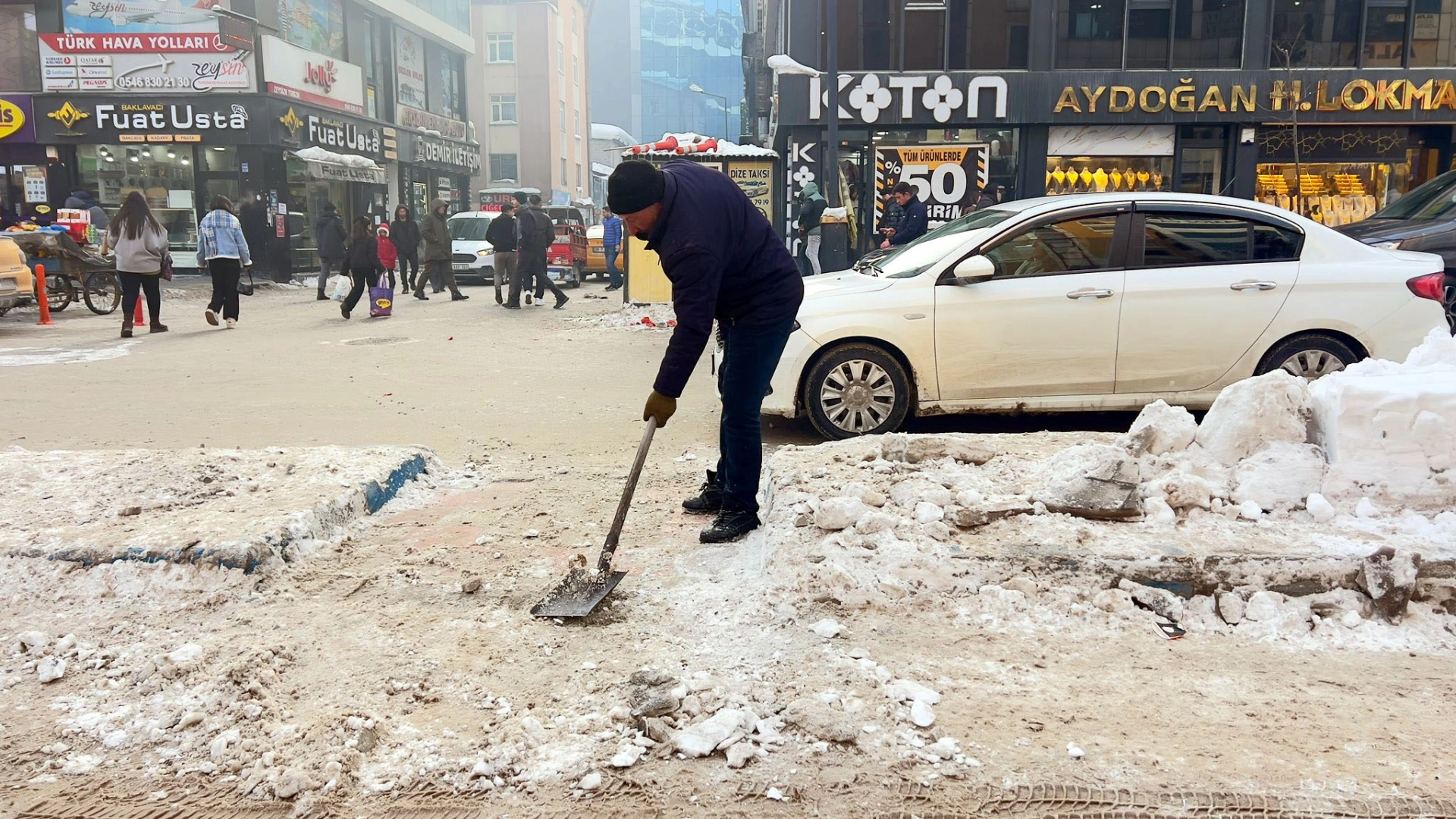 İlçede 3 tekerlekli bisikletiyle yük taşımacılığı yapan Sefer Ürek ise Cengiz Topel Caddesi'nde refüj ve kaldırım girişlerinde oluşan buzları kürekle kırıp temizledi. Ürek, bu sayede bebek arabaları ve engelli bireylerin tekerlekli sandalyelerinin rahatça geçilebilmesini sağladı.
