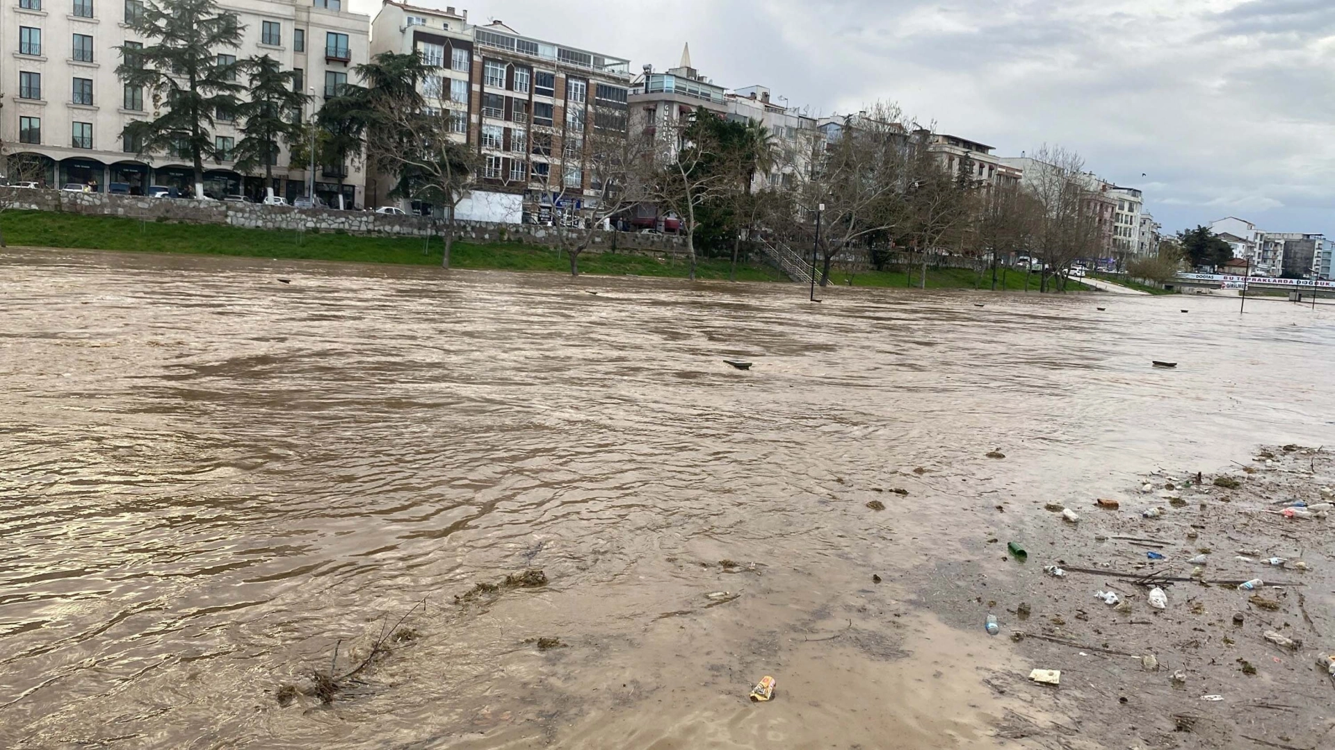 Biga ilçesinden geçen Kocabaş Çayı'nın taşması nedeniyle yakınında bulunan otopark, sel sularıyla doldu. Otopark zabıta ekipleri tarafından kullanıma kapatıldı.