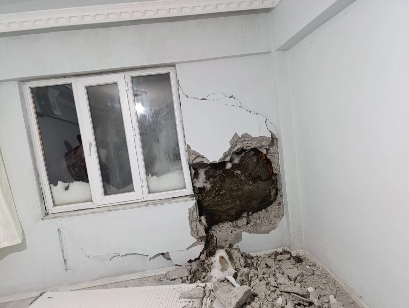 Olay, dün saat 21.00 sıralarında Karşıyaka Mahallesi’nde meydana geldi. Dağdan kopan kaya barçaları, yuvarlanıp Yusuf Dayan’a ait eve çarptı. Evin arka duvarında büyük hasar oluşurken, kaya parçalarından biri yatak odasının duvarını deldi. Bu sırada evin salonunda oturanlar ise büyük korku ve panik yaşayarak kendilerini dışarı attı. İhbar üzerine adrese AFAD, polis, itfaiye ve sağlık ekipleri sevk edildi. Ekipler, yeni kaya düşme riskine karşı evi tahliye edip, çevresine güvenlik şeridi çekti. AFAD ve itfaiye ekipleri evde hasar tespit çalışması yaptı.