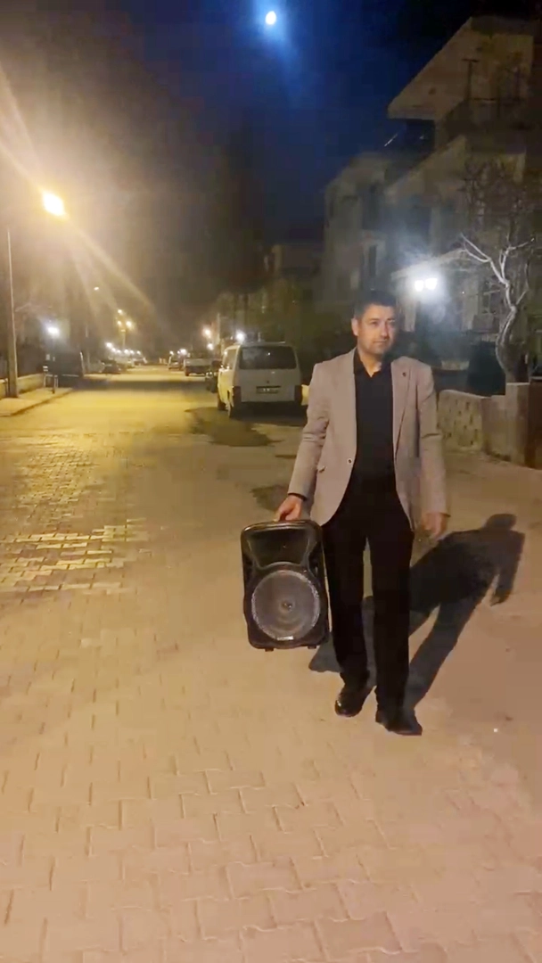 Adem DURMAZ/KORKUTELİ (Antalya), (DHA)- ANTALYA'nın Korkuteli ilçesinde Muhtar Tekin Korucu, sahura uyandıracak davulcu gelmeyince taşınabilir hoparlörden davul sesi ve maniler açıp, cadde cadde dolaşarak mahalleliyi uyandırmaya başladı. Korkuteli'ne bağlı Aşağıpazar Mahallesi Muhtarı Tekin Korucu, ramazan ayında davulcu gelmeyince halkı sahura kaldırmak için kendince bir çözüm buldu. Taşınabilir bir ses sistemi edinen Muhtar Korucu, davul ve manilerden oluşan bir müzik çalma listesi oluşturdu. Bu listeyi ses sistemine yükleyen Korucu, sahur vakti elinde hoparlörle cadde cadde dolaşıp, mahalleliyi sahura kaldırıyor. 'TAKDİR EDİLDİ'Tekin Korucu, "Mübarek ramazan ayının 4'te 1'ini bitirmemize rağmen mahallemize sahura kaldırmak için ramazan davulcusu henüz gelmedi. Vatandaşın talebine bahane değil, çözüm üretmek için ses sistemine davul ve güzel mani sesleri yükleyerek vatandaşlarımı sahura kaldırdım. Yeni nesil de bu örf ve adetleri unutmasın diye yapılan bu çalışma vatandaşlarımız tarafından da takdir edildi. Telefonum kilitlendi, 'Muhtarım bizim sokaktan da geçer misin' mesajlarına cevap veremez oldum. Mahallem için gecemi gündüzüme katıp çalışmaya devam edeceğim. Ama sahur için ramazan davulcusu arkadaşlarımızı sokaklarımızda görmek istiyoruz" dedi. (DHA)