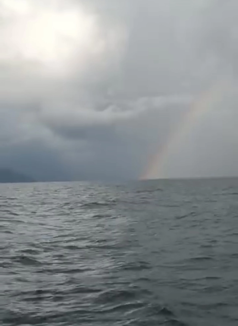Ayhan ACAR/KURUCAŞİLE (Bartın), (DHA)- BARTIN'ın Kurucaşile ilçesinde denize açılan balıkçılar, önce hortum sonra gökkuşağı ile karşılaştı. O anlar, cep telefonuyla görüntülendi. İlçede sabah saatlerinde tekneleriyle denize açılan balıkçılar, 2 ayrı doğa olayı ile karşılaştı. Kıyıdan yaklaşık 300 metre açılan balıkçılar, önce bulutların arasından oluşan hortum, ardından gökkuşağını gördü. Doğal güzelliğin yaşandığı o anlar, balıkçılar tarafından cep telefonuyla kayda alındı. (DHA)