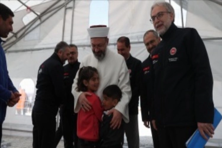 İlçe merkezindeki TDV aşevi ve mobil ikram aracının bulunduğu alana geçen ve burada çocuklara kitap hediye eden Erbaş, depremzedelere geçmiş olsun dileklerini iletti.