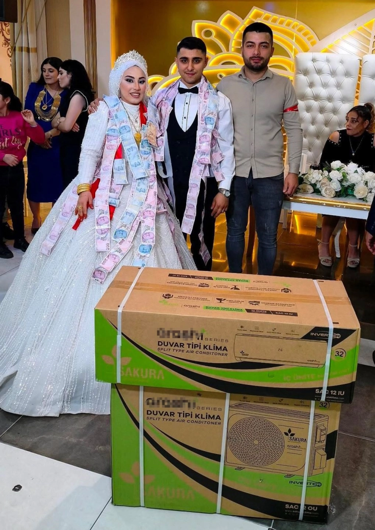 Damat Ramazan Keskin ise arkadaşının verdiği hediye karşısında büyük şaşkınlık yaşadığını ve ihtiyacı olduğu için klima hediye edilmesinin kendisini çok mutlu ettiğini söyledi. Keskin, “Düğünümde ve kınamda sağdıcım olan arkadaşım, hiç beklemediğim bir şekilde bana klima hediye etti. Herkes gibi ben de kendisinden takı ya da para bekliyordum. Klima getirdiğini gördüğüm anda gerçekten şok oldum. Evimde klima yoktu, normalde düğünde takılan altınları bozdurup klima alacaktım. Bu sürpriz hem beni çok şaşırttı hem de çok mutlu etti. Klima benim için altından daha değerli” diye konuştu. (DHA)