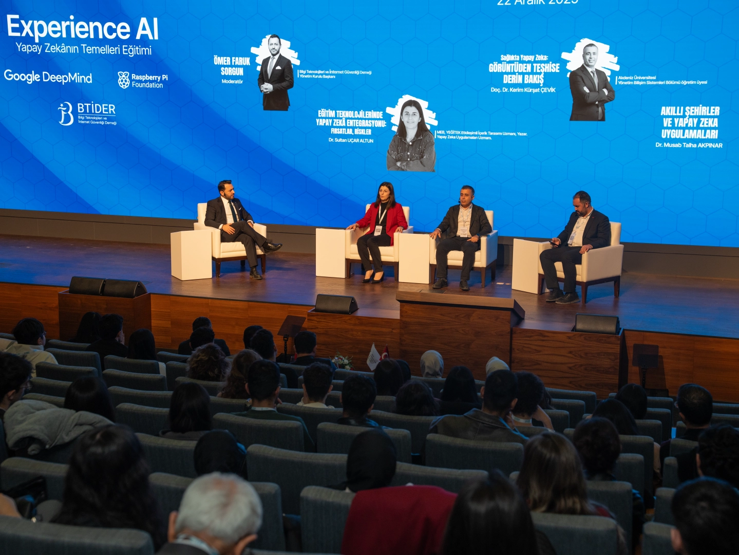 'Experience AI – Yapay Zekanın Temelleri Programı’nın 2025 yılı yıl sonu değerlendirme ve paneli 22 Aralık tarihinde Bilgi Teknolojileri ve İletişim Kurumu (BTK) Ana Salonu’nda gerçekleştirildi. Türkiye genelinde yapay zeka okuryazarlığını artırmayı hedefleyen programın yıl sonu etkinliğine; BTİDER Yönetim Kurulu Başkanı Ömer Faruk Sorgun, kamu kurumlarının üst düzey temsilcileri, akademisyenler, eğitim yöneticileri, öğretmenler, öğrenciler ve sektör paydaşları katıldı.