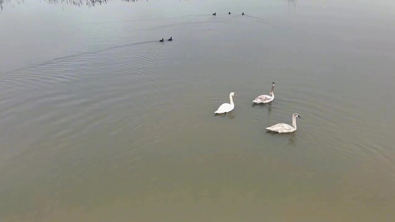 Düzce'nin Gölyaka ilçesinde bulunan, zengin biyolojik çeşitliliği ve doğal güzellikleriyle bölgenin en önemli sulak alanlarından biri olan Efteni Gölü, göçmen kuşların rotası üzerinde güvenli bir liman olmaya devam ediyor. ‘Kuş cenneti’ olarak anılan gölün son misafirleri ise 3 kuğu oldu. Göç yolculukları sırasında Efteni Gölü'nde dinlenen kuğuların, göl sularında süzüldüğü görüldü. Gölde yüzen kuğular dronla da görüntülendi. (DHA)