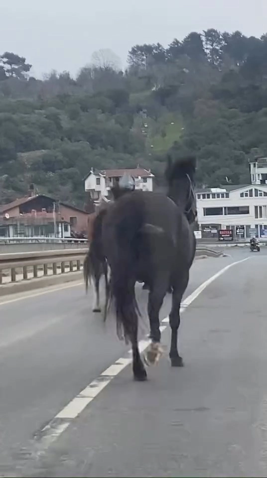 Olay, saat 12.00 sıralarında Riva yolu üzerinde meydana geldi. Yolda koşarak ilerleyen sahipsiz atları fark eden sürücüler, hayvanlara çarpmamak için hızlarını düşürdü. Trafikte kısa süreli aksama yaşanırken, atların Riva girişinde durduğu görüldü. Bir süre bölgede bekleyen atlar, daha sonra ters istikamete yönelerek gözden kayboldu. Yaşananlar, o sırada yoldan geçen bir sürücünün cep telefonu kamerasına yansıdı.