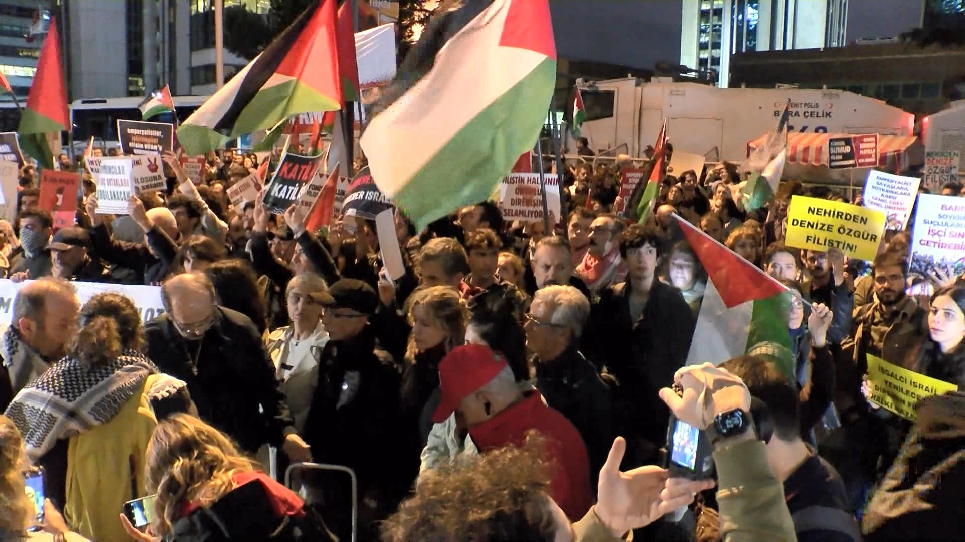 Yılmaz OKUR/İSTANBUL, (DHA) - İSRAİL’İN Gazze’de gerçekleştirdiği soykırımı ve Sumud filosuna yapılan müdahaleyi protesto eden kalabalık bir grup İsrail Başkonsolosluğu önünde protesto yaptı.Beşiktaş’ta bulunan İsrail Başkonsolosluğu önünde toplanan kalabalık sloganlar atarak İsrail’in Gazze'de gerçekleştirdiği soykırımı ve Sumud Filosu'na yapılan müdahaleyi protesto etti. Çeşitli sloganlar atan grup basın açıklamasının okunmasının ardından dağıldı. (DHA)