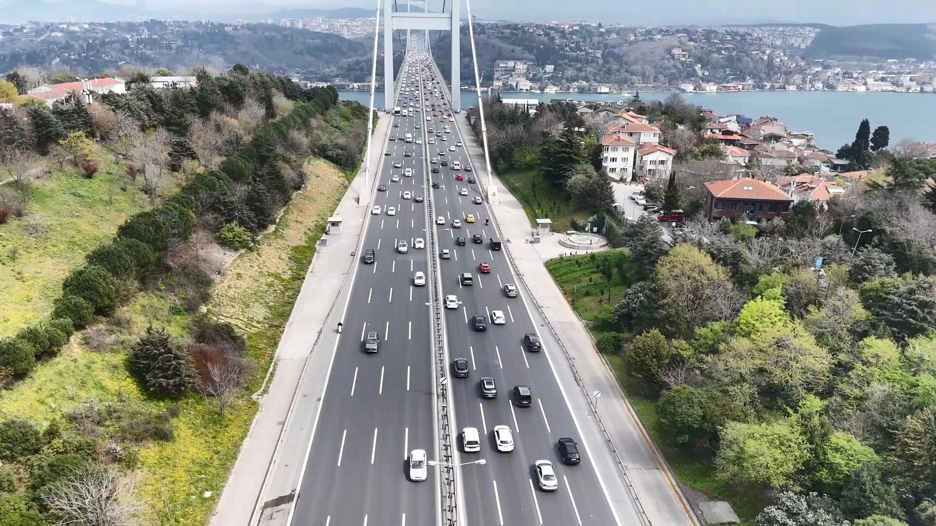 Doğan Can CESUR - İsa ALMAÇAYIR - Uğur ŞAHİN / İSTANBUL, (DHA) - RAMAZAN Bayramı'nın 1'inci gününde trafik yoğunluğu saat 15.30 itibariyle yüzde 81 olarak ölçüldü. İstanbul'daki trafik yoğunluğu Fatih Sultan Mehmet Köprüsü'nden dronela havadan böyle görüntüllendi. Edirne istikametinde de Fatih Sultan Mehmet Köprüsü'ndeki yoğunluk dikkat çekti. Diğer yandan öğle saatlerinde Mahmutbey gişelerinde Edirne istikametinde oluşan trafik yoğunluğu drone kamerasına böyle yansıdı.(DHA)