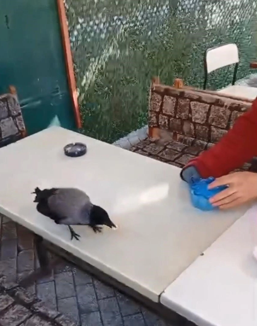 Olay, saat 10.00 sıralarında Mehmet Akif Mahallesi'nde bulunan bir camide meydan geldi. İddiaya göre, servis şoförü Mehmet Sağın dinlemek için girdiği caminin çay ocağında çay içmeye başladı.Bu sırada masaya bir karga kondu. Aç olduğunu düşünen Mehmet Sağın kargaya önce masada bulunan kesme şekerlerden verdi. Bu sırada çevredekiler karganın insanlardan kaçmadığını fark ederek, "Normalde karganın kaçması lazım kaçmıyor" diyerek tepki verdi. Karga uzun süre kesme şekerle oynarken bir ara şeker kutusunu açtı. Sağın ile karga arasındaki oyun uzun bir süre devam etti. Şeker yemeyen karga için Sağın bu kez fırından aldığı ekmeği uzattı.Sağın kargayı uzun süre elleriyle besledi. Karga ekmeği yedikten sonra uçarak uzaklaştı. O anlar cep telefonu kamerasıyla kaydedilirken, vatandaşların şaşkınlıkları ve aralarındaki diyaloglar da kameraya yansıdı.(DHA)