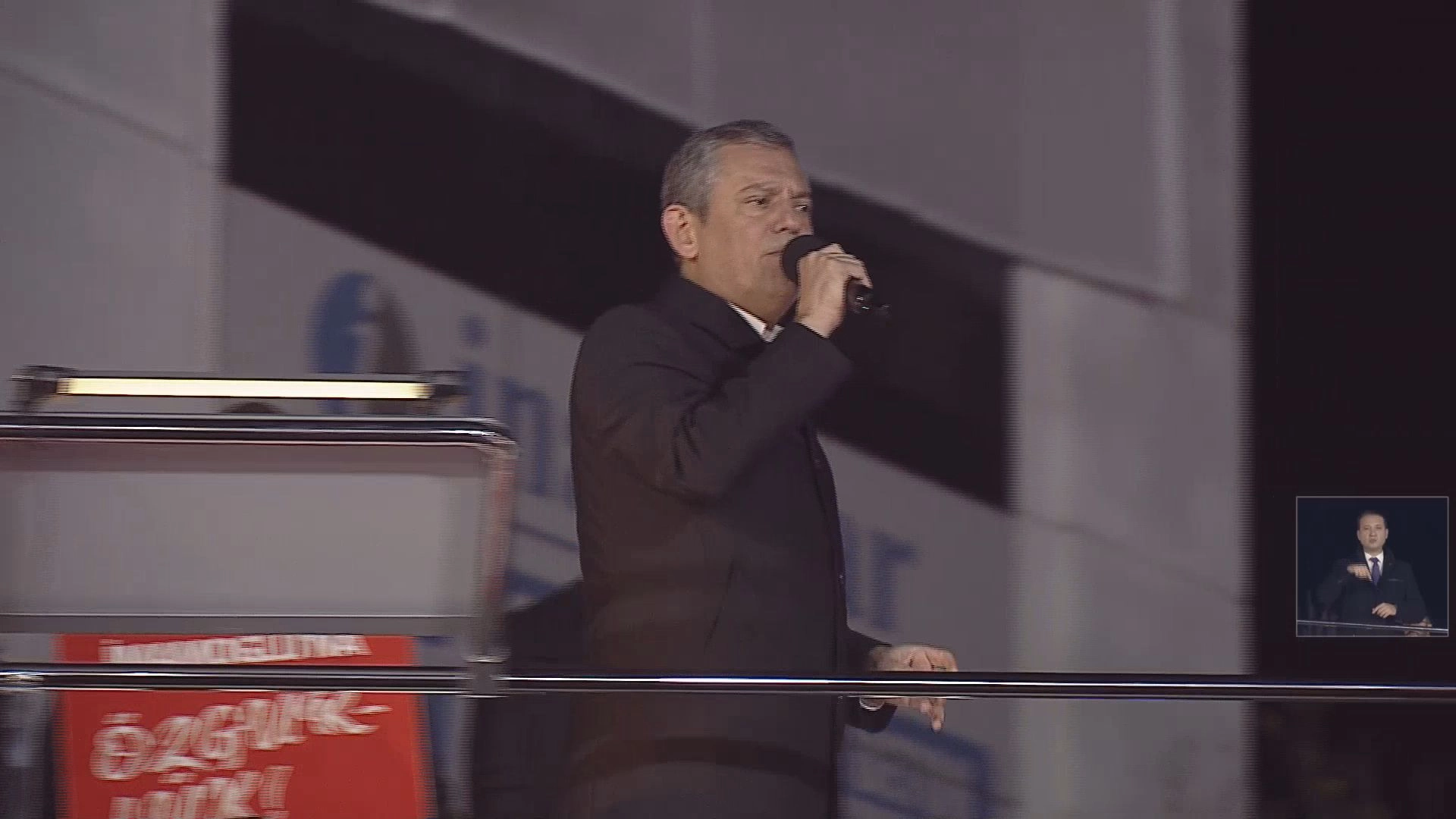 Özel, "Ordudan attığı teğmenleri geri getirip de elleriyle onların rütbesini takmayan namussuzdur, şerefsizdir. Bu rejim kimi üzdüyse onu korumak, kime zulmetti ise ona sahip çıkmak, bütün mağdurlarına sahip çıkmak hepimizin namus borcudur. Ant olsun ki yapacağız bunu. Bunu niye söylüyorum? Şunun için söylüyorum: Hep 'Gazi Mustafa Kemal Atatürk'ün koltuğunda oturuyoruz' diyoruz. En büyük onurumuzdur, gururumuzdur. Oturduğumuz koltuk İsmet Paşa'nın da koltuğudur, ondan bize vasiyet namussuzlar kadar namusluların da cesur olmasıdır. Kara düzen gidiyor, AK Parti'nin kara düzeni gidiyor. Bu rejimin mağduriyetlere sahip çıkılıyor, bu yaptıklarının unutulmayacağı günler geliyor. Bakan evlatlarının devri kapanıyor, vatan evlatlarının devri yaklaşıyor. Bugün Silivri'deydik, orada beklerken aklıma geldi. Ya biz hep taraf oluyoruz. Ben 10 yıl, 15 yıl önce de orada taraftım. Tayyip Bey de taraftı. Ben rahmetli Kuddusi Okkır'ın tarafındaydım. Ben İlker Başbuğ'un tarafındaydım. Ben Mustafa Balbay'ın, Mehmet Haberal'ın, şerefli Türk subaylarının tarafındaydım. Tayyip Bey Zekeriya Öz'ün tarafındaydı. Ona araba veriyordu altına. 15 Temmuz'da Zekeriya Öz ve arkadaşları Tayyip Bey'e, yönetimine darbe yaptılar. Sonra da sıçan gibi kaçtılar. Benim Mustafa Balbay'ım, Mehmet Haberal'ım, İlker Paşam, alnı açık başı dik geziyor hala. Ben doğru taraftayım. Biz doğru taraftayız. Geçtiğimiz günlerde küçücük bir çocuk yine işçi olarak çalıştırıldığı, emeğinin sömürüldüğü MESEM'lerde öldü. Orada Tayyip Bey o katliamı yapan sistemin, bunu yapan Milli Eğitim Bakanının tarafında. Türkiye İşçi Partili çocuklar da gitmiş, protesto ediyorlar gençler. Vallahi biz de onların tarafındayız. Silivri'de yatan TİP'lilere, Bakırköy kadında yatan TİP'lilere selam olsun. Sizin iradeniz, bizim irademizdir. Bu meydan Cumhuriyet Halk Partisi'nin meydanı değildir. İlk günden beri tüm siyasi partiler, büyük bir dayanışma gösterdiler. Biz bu meydanda Türkiye'nin elbette ki sol ve sosyalist demokratlarıyla, liberal demokratlarıyla, muhafazakar demokratlarıyla, milliyetçi demokratlarıyla, aslan sosyal demokratlarıyla omuz omuzayız. Biz demokrasinin tarafındayız" dedi. (DHA)