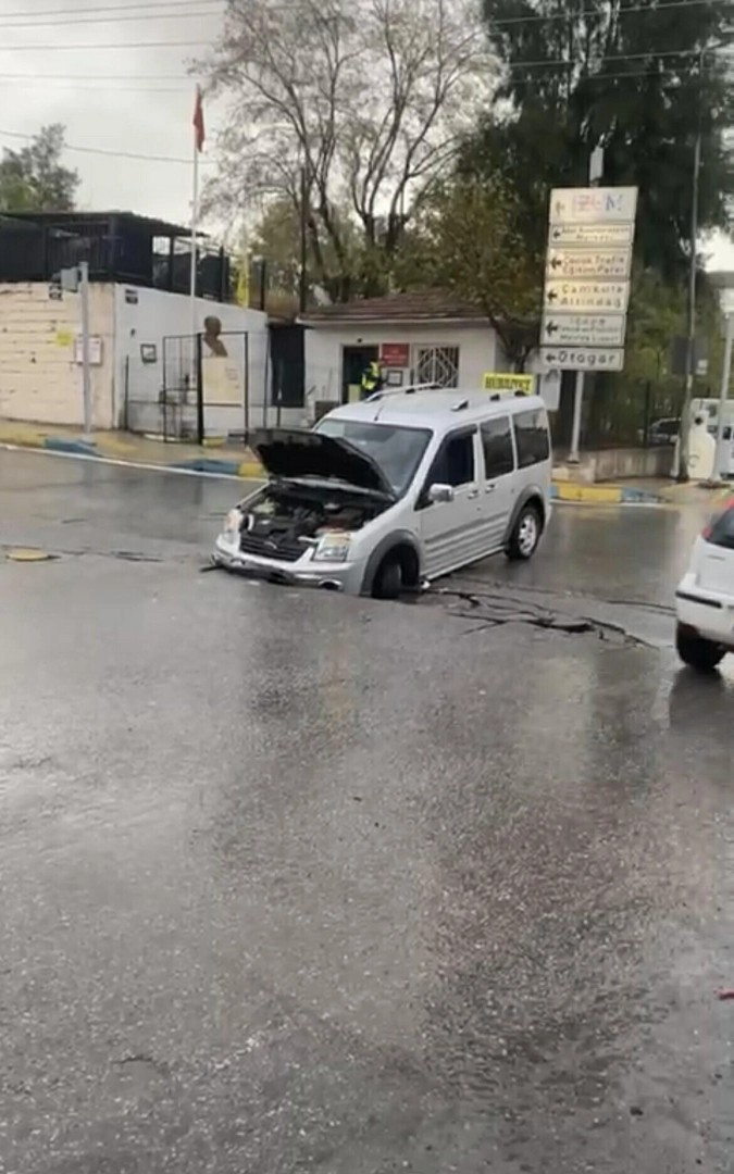 ÇÖKEN YOL NEDENİYLE BİR ARAÇ ZARAR GÖRDÜİzmir’de sabah saatlerinde etkili olan sağanak nedeniyle Buca ilçesinde bir yolda göçük oluştu. O esnada seyir halinde olan bir hafif ticari aracın ön kısmı göçen yola düştü. Araçta hasar meydana gelirken, olay yerine polis sevk edildi. Araç, çekici tarafından göçükten çıkarıldı. (DHA)Mert CONA/ İZMİR, (DHA)