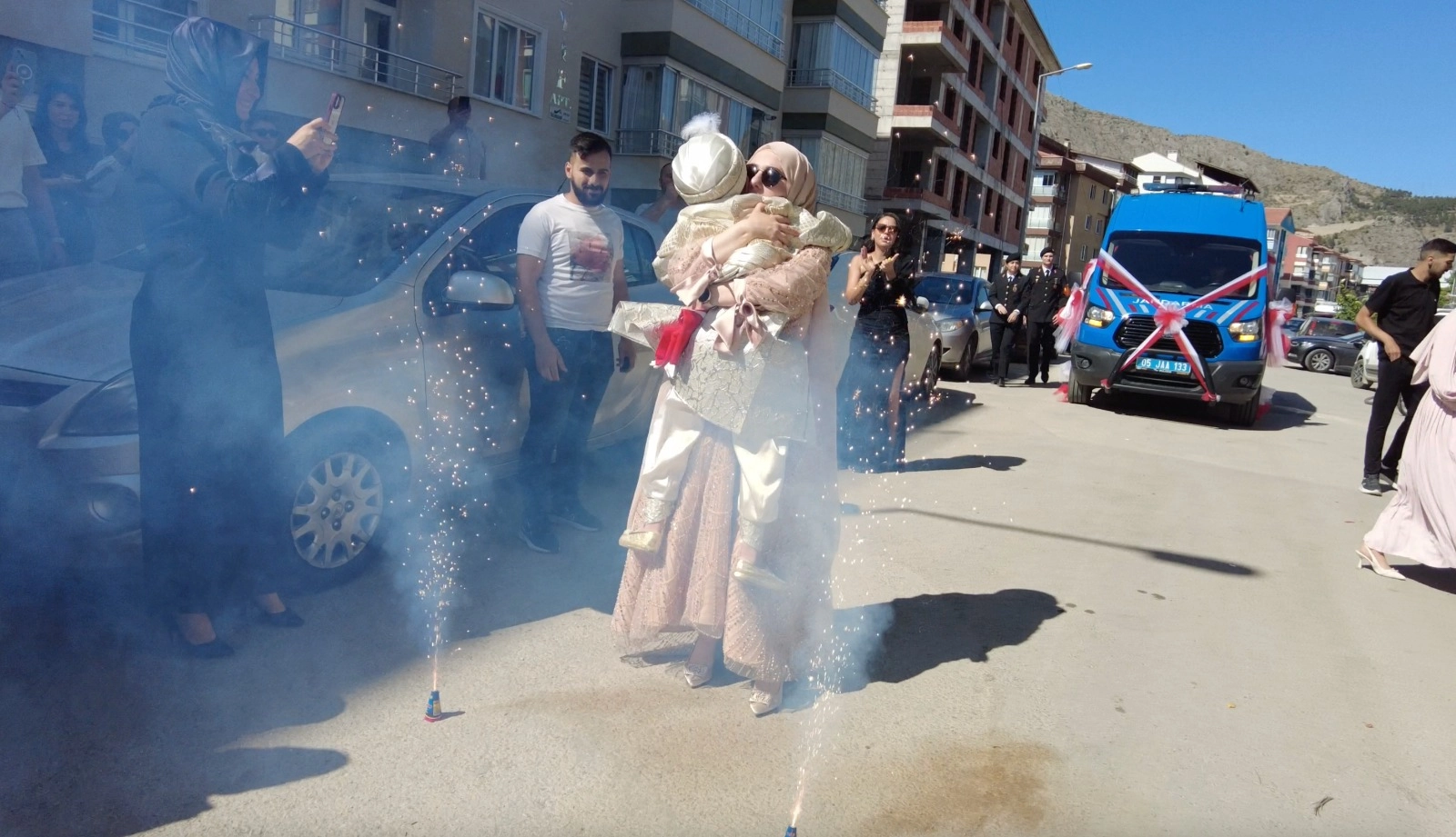 Şerife Serap KARA/ AMASYA, (DHA)- AMASYA'da jandarma aracı, 2018 yılında şehit olan Jandarma Uzman Çavuş Kadir Çakı’nın (26) oğlu Alp Aslan Çakı (7) için sünnet arabası oldu.2018 tarihinde Diyarbakır'ın Dicle ilçesi kırsalında Lice Jandarma Komando Alay Komutanlığı'nca bölücü terör örgütü mensuplarına karşı yürütülen operasyonda, el yapımı patlayıcı infilak etti. Patlamada Uzman Çavuş Kadir Çakı şehit oldu. Merkeze bağlı Beldağ köyünde defnedilen şehidin oğlu Alp Aslan Çakı için kentte ailesi tarafından sünnet töreni düzenlendi. Şehidin eşi Hanife Çakı Amasya İl Jandarma Komutanlığı’na giderek oğlu Alp Aslan Çakı için sünnet töreni yaptığını belirtip askerleri davet etti. Bunun üzerine jandarma ekipleri bir aracı balonlarla süsleyerek sünnet aracına dönüştürdü. Sirenler çalarak Hanife Çakı'nın yaşadığı eve gelen jandarma ekipleri, Alp Aslan Çakı’ya sürpriz yaptı. Amasya İl Jandarma Komutanı Jandarma Albay Mehmet Arı eve gelerek şehidin oğluna, bisiklet hediye etti. Sünnet arabasına binen Alp Aslan Çakı, sirenler eşliğinde şehir turu attıktan sonra şehit babasının mezarının başına gitti. Babasının mezar taşını öpen Alp Aslan Çakı ardından köyünde sünnet töreni yapılacak alana gitti. Beldağı Köyü’nde yapılan sünnet düğününe Amasya Valisi Yılmaz Doruk, İl Jandarma Komutanı Jandarma Albay Mehmet Arı ile çok sayıda davetli katıldı. (DHA)