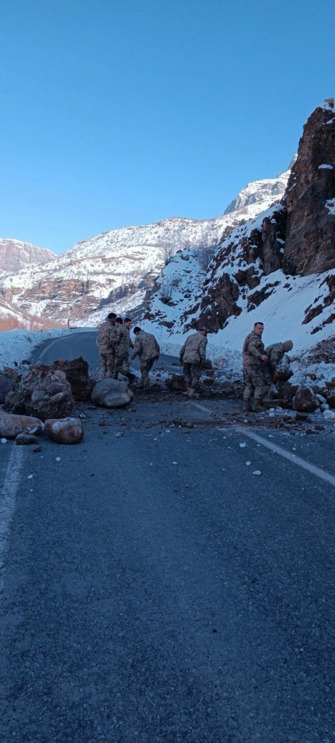Olay, sabah saatlerinde Hakkari-Çukurca kara yolunun Şorti mevkisinde meydana geldi. Yamaçlardan kopan büyük kaya parçaları kara yoluna düştü. Güvenlik gerekçesiyle yol ulaşıma kapatıldı. Üs bölgesinden görevden dönen askerler, kendi imkanlarıyla yola düşen kaya parçalarını temizledi. Yaklaşık 1 saat sonra yol, tek şeritten ulaşıma açıldı. İhbar üzerine bölgeye sevk edilen Karayolları ekipleri, yoldaki kaya parçalarını temizledi.