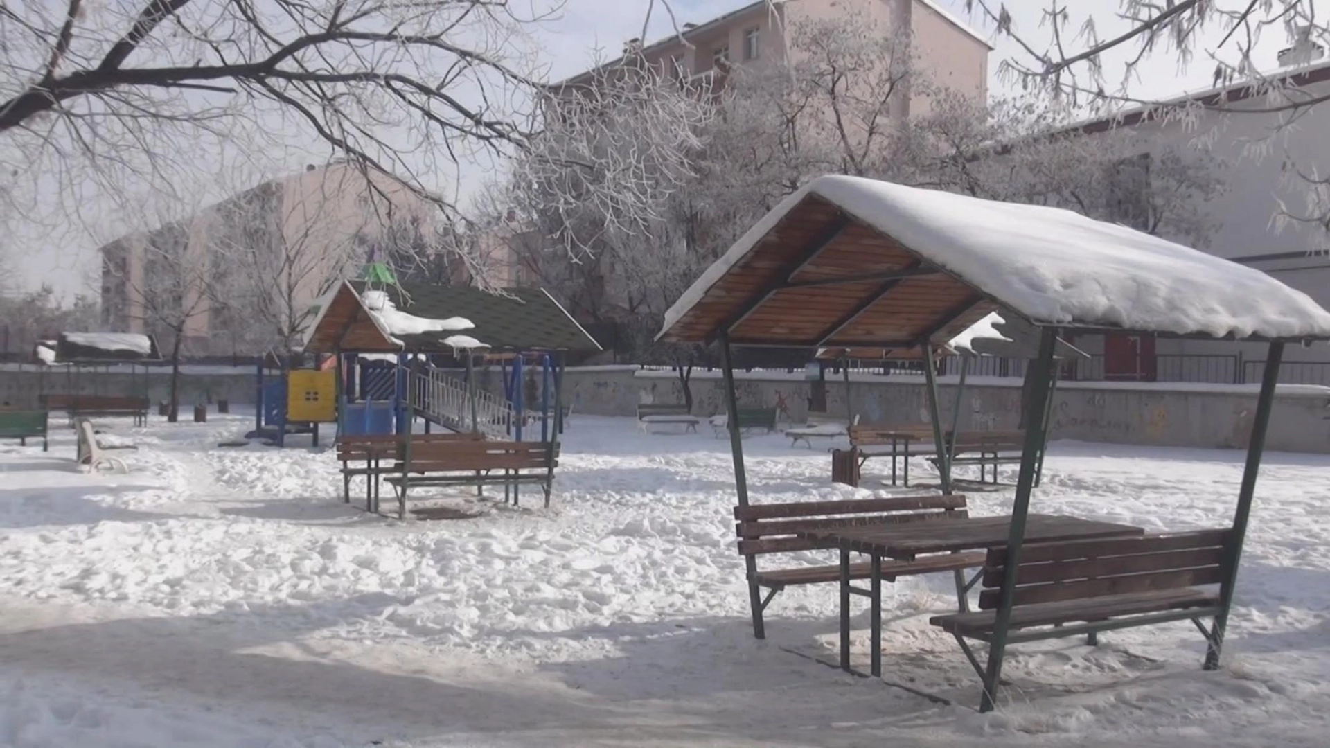 Volkan KARABAĞ/KARS,(DHA)-KARS'ta dondurucu soğuklar etkili olurken, termometreler eksi 20 dereceyi gördü, ağaçlarda ve yeşil alanlarda kırağı oluştu.