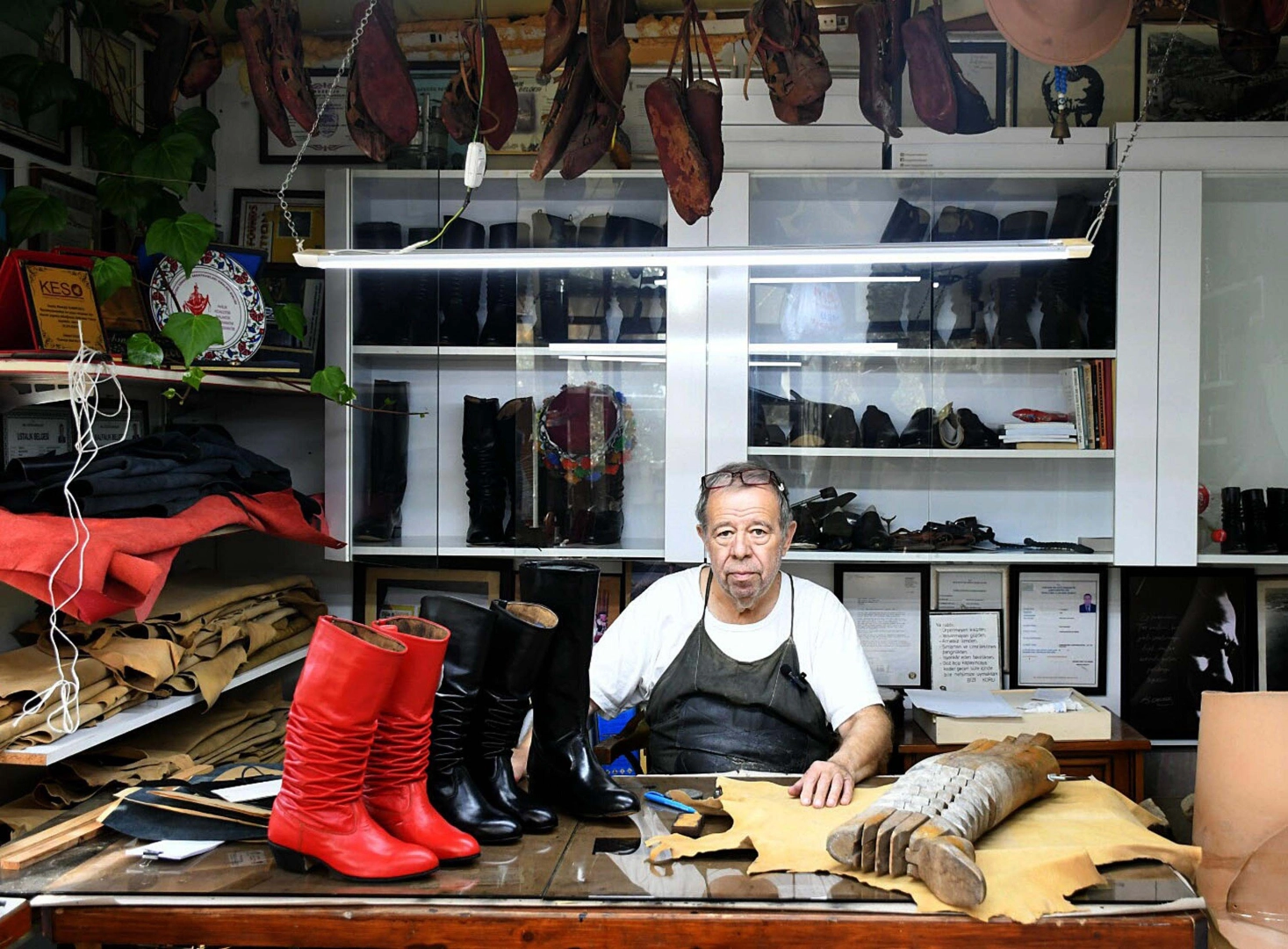 Oğuzhan BOYSAN/KUŞADASI (Aydın), (DHA)- AYDIN'ın Kuşadası ilçesinde, 'UNESCO Yaşayan İnsan Hazineleri Türkiye Listesi'nde yer alan körüklü çizme ustası Mustafa Karpuzcu (64), 58 yıldır mesleğini yaşatmaya çalışıyor. Yeni ustaların yetişmediğini belirten Karpuzcu, "Benden sonra bu çizmeleri yapan kalmayacak. Çünkü zanaatımı öğretecek çırak bulamıyorum" dedi.Ege Bölgesi'nde Efelerin giydiği körüklü çizmeler, günümüzde folklor, tiyatro ve sinema gibi görsel sanatların yanı sıra kostümlerde de aksesuar olarak tercih ediliyor. Geleneksel deve güreşlerinde kullanılan kıyafetleri de tamamlayan körüklü çizmeleri üreten usta sayısı ise giderek azalıyor. Kuşadası'nda yaşayan körüklü çizme ustası Mustafa Karpuzcu da gelişen teknolojiye direnerek 58 yıldır mesleğini yaşatmaya çalışıyor. 'UNESCO Yaşayan İnsan Hazineleri Türkiye Listesi'nde yer alan Karpuzcu, Bayraklıdede Mahallesi'nde bulunan yaklaşık 25 metrekarelik atölyesinde, bir zamanlar zengin ağaların giydiği körüklü çizmeleri, el emeğiyle imal ediyor.Aşık olduğu mesleğine babası Mehmet Karpuzcu'nun yanında 6 yaşında attım attığını belirten Mustafa Karpuzcu, "Bu sanatın sırlarını babamın yanı sıra Şükrü Bıçakçı ile Necip Şenok'tan öğrendim. Meslek, sabır ve ustalık istiyor. Çünkü körüklü çizme, tamamen el işçiliğiyle yapılıyor. Baklava körük, akordeon körük ve boğma körük olmak üzere 3 çeşidi bulunuyor. Deri, henüz ıslakken işleniyor. Kuşadası'nda körüklü çizmeleri eskiden zenginler giydiği için çok üretirdim. Bugünlerde ise sadece özel talep üzerine ayda 7-8 tane yapıyorum" dedi.'DERİ KOKUSUYLA BÜYÜDÜM'Körüklü çizme zanaatının unutulmaya yüz tuttuğunu belirten Mustafa Karpuzcu, mesleği öğretecek çırak bulmakta zorluk çektiğini söyledi. Gençlerin artık bu tür el emeği ve göz nuru gerektiren mesleklere olan ilgisini yitirdiklerine dikkati çeken Karpuzcu, "Deri kokusu içerisinde büyüdüm. Çocukken başladığım mesleğime 64 yaşımda hala çok aşığım. Ancak benden sonra Kuşadası'nda bu çizmeleri yapan kalmayacak. Çünkü zanaatımı kimse öğrenmek istemiyor. Böyle giderse bu meslek de yakın zamanda tarihe karışacak" diye konuştu. (DHA)