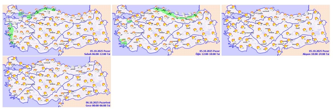 ANKARA, (DHA)- METEOROLOJİ Genel Müdürlüğü, yurdun kuzey ve batı kesimlerinin yağmur ve sağanak yağışlı, diğer bölgelerin az bulutlu ve açık geçmesinin beklendiğini duyurdu. Meteoroloji Genel Müdürlüğü tarafından yapılan tahminlere göre; bugün yurdun kuzey ve batı kesimlerinin parçalı, yer yer çok bulutlu, Kıyı Ege, İstanbul, Sakarya, Bursa, Zonguldak, Bartın, Sinop, Samsun ve Rize çevreleri, Ordu'nun, Giresun'un ve Trabzon'un iç kesimleri ile Kastamonu'nun ve Artvin'in kıyı kesimlerinin yağmur ve sağanak yağışlı, diğer bölgelerin az bulutlu ve açık geçeceği bekleniyor. Hava sıcaklığının, batı kesimlerde mevsim normalleri civarında, diğer yerlerde mevsim normallerinin üzerinde seyretmesi bekleniyor. Rüzgarın da genellikle güney yönlerden hafif, ara sıra orta kuvvette eseceği tahmin ediliyor. Bugün için güncel bir meteorolojik uyarı bulunmuyor.BÖLGELERDE HAVABölgelerdeki hava durumuna bakıldığında; Marmara Bölgesi'nin parçalı ve çok bulutlu, İstanbul, Sakarya ve Bursa çevrelerinin yerel olmak üzere sağanak yağışlı geçeceği tahmin ediliyor. Ege Bölgesi'nin parçalı ve çok bulutlu, Kıyı Ege'nin sağanak yağışlı geçeceği tahmin ediliyor. Akdeniz ve İç Anadolu Bölgelerinin parçalı ve az bulutlu geçeceği tahmin ediliyor. Batı Karadeniz Bölgesi'nin parçalı ve çok bulutlu, Bartın, Zonguldak ve Sinop çevreleri ile Kastamonu'nun kıyı kesimlerinin sağanak yağışlı geçeceği tahmin ediliyor. Orta ve Doğu Karadeniz Bölgelerinin parçalı ve çok bulutlu, Samsun ve Rize çevreleri, Ordu'nun, Giresun'un ve Trabzon'un iç kesimleri ile Artvin'in kıyı kesimlerinin sağanak yağışlı geçeceği tahmin ediliyor. Doğu Anadolu ve Güneydoğu Anadolu bölgelerinin az bulutlu ve açık geçeceği tahmin ediliyor. (DHA)
