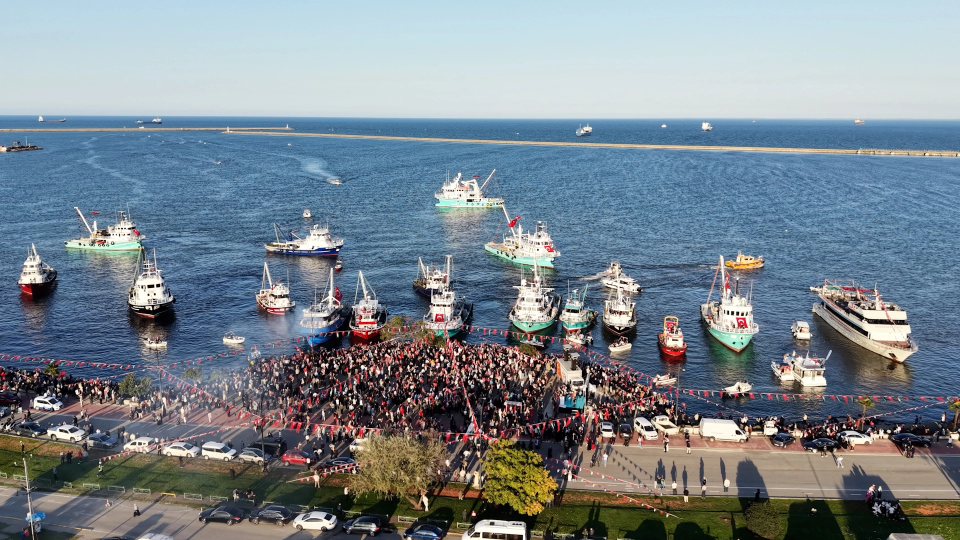 Gökhan İÇKİLLİ/ SAMSUN, (DHA)- SAMSUN’da Küresel Sumud Filosu’na ve Filistin halkına destek vermek için tekneler bir araya geldi. Desteğe karada desteğe katılan vatandaşlar da eşlik etti.Filistin’e Destek Platformu tarafından Filistin halkının yanında olmak ve Gazze’ye umut ile dayanışma mesajlarını ulaştırmak amacıyla ‘Sumud Filosuna – Gazze’ye Destek Programı’ etkinliği düzenlendi. Samsun Limanı açıklarında toplanan balıkçı tekneleri, gezi tekneleri ve deniz araçları Sumud Filosu’na ve Filistin halkına destek vermek amacıyla sirenler çalarak kortej oluşturdu. Vatandaşlar da karadan ellerinde Filistin ve Türk bayraklarıyla eyleme destek verdi. Programa Samsun Valisi Orhan Tavlı, Samsun Ak Parti Samsun Milletvekilleri Orhan Kırcalı ve Erhan Aksu, Samsun Büyükşehir Belediye Başkanı Halit Doğan, Canik Belediye Başkanı İbrahim Sandıkçı, siyasi parti il başkanları, sivil toplum kuruluşu temsilcileri ve vatandaşlar katıldı. Programın açılış konuşmasını yapan Filistin Destek Platformu Başkanı Ahmet Muştu, “Gazze’de 2 yıldır yaşanan katliam ve soykırım tahammül edilemez noktaya gelmiştir. 2 milyon insan açlığa mazur bırakılıyor. Zalimler artık açlığı bir silah olarak kullanmaya başladılar. Bugün ölüm Gazze’de sıradanlaştı. Tüm dünyanın gözleri önünde cereyan eden soykırıma karşı hem uluslararası mekanizmalar hem de bölgesel güçler sessiz kalmaya devam ediyor. Bu duruma sessiz kalanlar, tepki vermeyenler zulume ortaksınız. Sumud, sokakta yankılanan sloganların sosyal medyada büyüyen kampanyaların ortak adı oldu. Sumud, birçok ülkeden 500’ye yakın aktivistler tarafından oluşturulan bir yardım filosunun adıydı. Farklı renklerden, dillerden, inançlardan gelen bu insanlar tek bir amaç için bir araya geldiler. Gazze’nin yalnız olmadığını tüm dünyaya haykırmak istediler. Bu filonun niyeti sadece insani yardım götürmek değildir. Asıl niyet dünyaya bir tanıklık sunmaktı. Gazzeli çocukların uykusuz gecelerine, annelerin çaresizliğine tanıklık etmekti” dedi.Etkinlik daha sonra şiir dinletisi ve Samsun İl Müftüsü Seyfullah Çakır’ın dualarının ardından son buldu. (DHA)