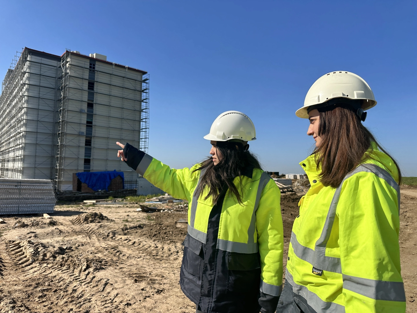 Kentte bir süredir devam eden, 240 işçinin çalıştığı inşaatta görev alan inşaat mühendisi Cansu Ünlü (30), iş sağlığı güvenliği uzmanı Gamze Akoğlu Işık (30), mimarlar Yeliz Kaya (28) ve Betül Seymen (24) ile mutfak personeli Figen Yaman (40), çalışkanlıklarıyla göz dolduruyor. İnşaatın, zorlu çalışma koşullarına rağmen mesleklerini sürdüren kadınlar, iş yerindeki erkeklere de örnek oluyor. İnşaat mühendisi ve şantiye şefi Cansu Ünlü, zorluklarına rağmen mesleğini sevdiğini belirterek, "Mesleğin tabii ki çeşitli zorlukları var. Aslında erkek mesleği olarak görülse de biz kadınlar da aynı azim ve kararlılıkla çalışıyoruz ve her meslekte olduğu gibi aslında her alanda olduğumuz gibi bu alanda da aynı kararlılıkla, öz güvenle üretmeye devam ediyoruz. Aslında bizler sadece yapıları değil, geleceğimizi de inşa ediyoruz. Yuvayı dişi kuş yapar tabiri aslında sadece mecazi bir anlam değil. Bizler burada bunu gerçekleştirmeye çalışıyoruz. Her zaman da üretmeye, çalışmaya, emek vermeye devam edeceğiz" dedi.