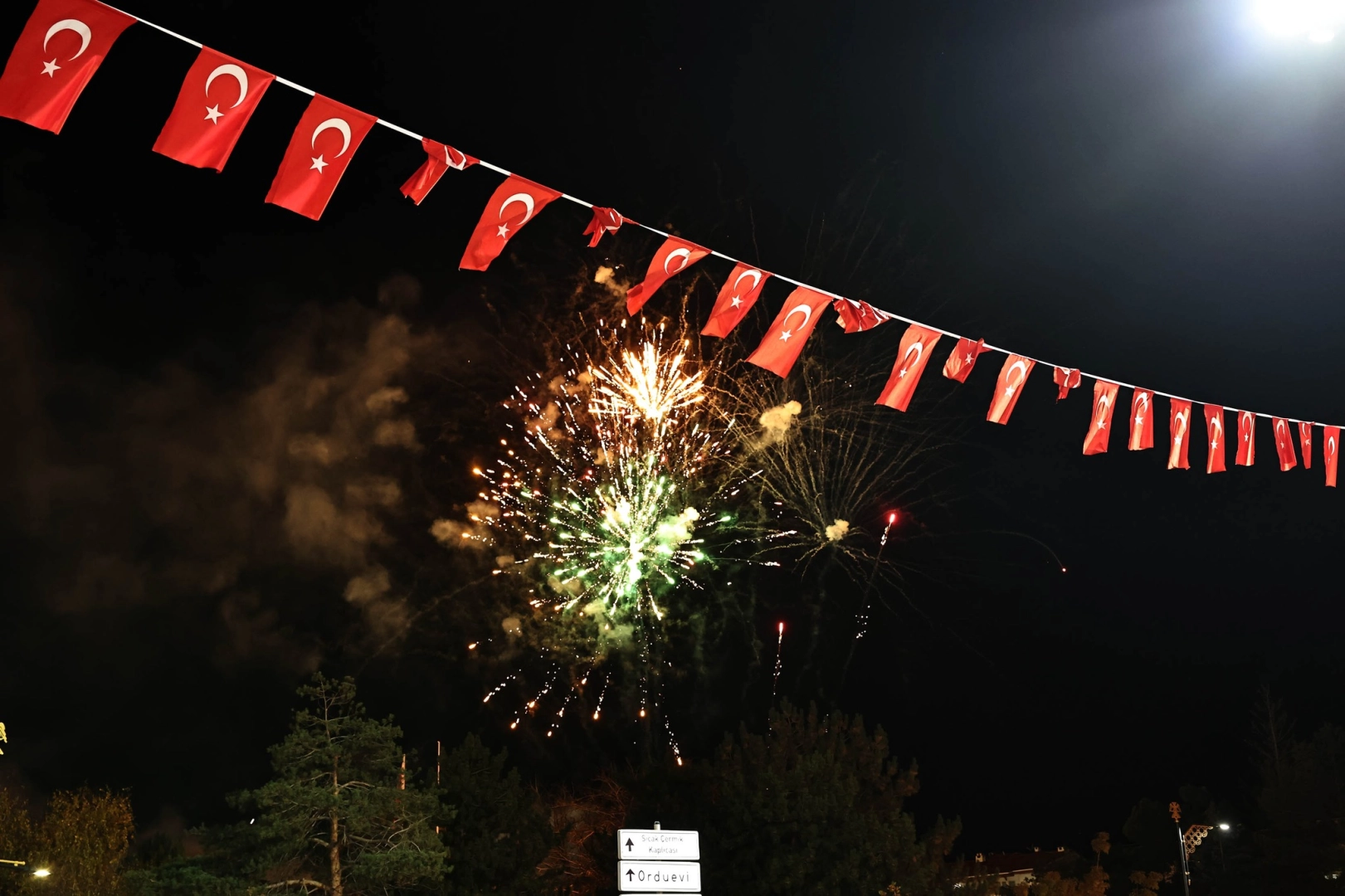 Sivas'ta, Cumhuriyet Bayramı kutlamaları kapsamında kortej yürüyüşü düzenlendi. Tren garı önünde başlayan yürüyüşe Vali Yılmaz Şimşek, Garnizon Komutanı Tuğgeneral Zeynel Abidin Altekin, Belediye Başkanı Adem Uzun ve yaklaşık 2 bin kişi katıldı. Türk bayrakları ve marşlarla gerçekleşen yürüyüşte bayram coşkusu yaşandı. Cumhuriyet Meydanı'nda sona eren yürüyüş sonrası saygı duruşunda bulunularak, İstiklal Marşı okundu. Cumhuriyet Bayramı kutlamaları havai fişek gösterisi ile sona erdi. Yaklaşık 20 dakika süren havai fişek gösterisi ilgiyle izlendi. (DHA)