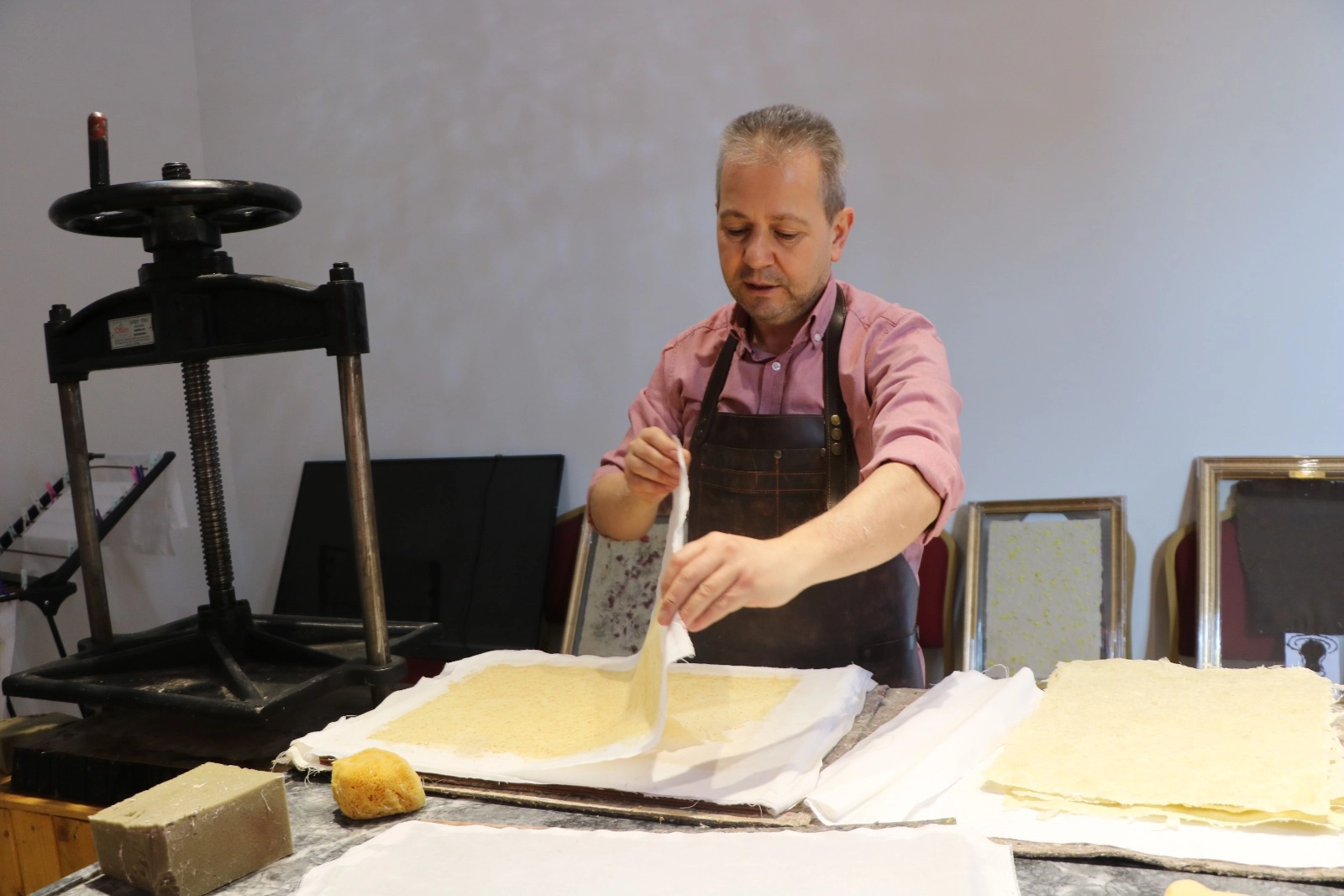 Tarihi konak atölyeye çevrildi; 2 bin yıllık yöntemle sanatsal kağıtlar üretiliyor / Ek fotoğraflar