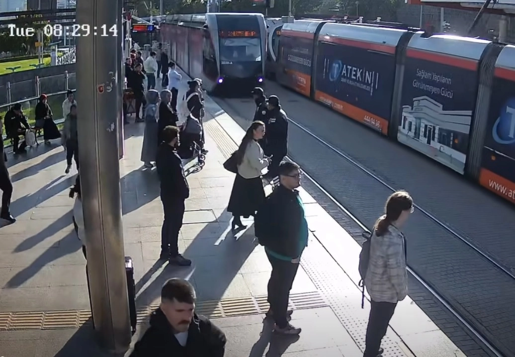 KAYSERİ, (DHA)- KAYSERİ’de, durakta tramvayı fark etmeyip karşıya geçmeye çalışan yolcu, güvenlik görevlisi sayesinde son anda kurtuldu. Olay, güvenlik kamerasına yansıdı. Olay, saat 08.30 sıralarında Cumhuriyet Meydanı tramvay durağında meydana geldi. Kulağında kulaklık, tramvayı fark etmeyip yolun karşısına geçmeye çalışan kadın yolcuyu güvenlik görevlisi kurtardı. O anlar güvenlik kamerasına yansıdı. Görüntülerde, yayanın kendisini kurtaran güvenlik görevlisinden özür dilediği duyuldu. Görüntüleri sosyal medya hesabından paylaşan Büyükşehir Belediyesi bünyesindeki Ulaşım A.Ş., “Bugün sabah saatlerinde raylı sistem hattımızda, kulaklığı takılı olduğu için çevresini fark edemeyen bir yolcumuz, karşıya geçmek isterken güvenlik personelimizin dikkati sayesinde olası bir kazadan son anda kurtuldu. Bu olay hepimiz için önemli bir hatırlatma. Güvenlik görevlisi arkadaşımıza dikkatli davranışı için teşekkür ediyoruz. Ancak asıl dikkat etmemiz gereken konu tüm yolcularımızın raylı sistem hatlarında daha dikkatli olmasıdır. Lütfen yaya geçitlerini kullanın. Karşıya geçerken iki yönü de kontrol edin. Kulaklık takılıyken çevresel sesleri duyamayacağınızı unutmayın” ifadelerine yer verdi. (DHA)