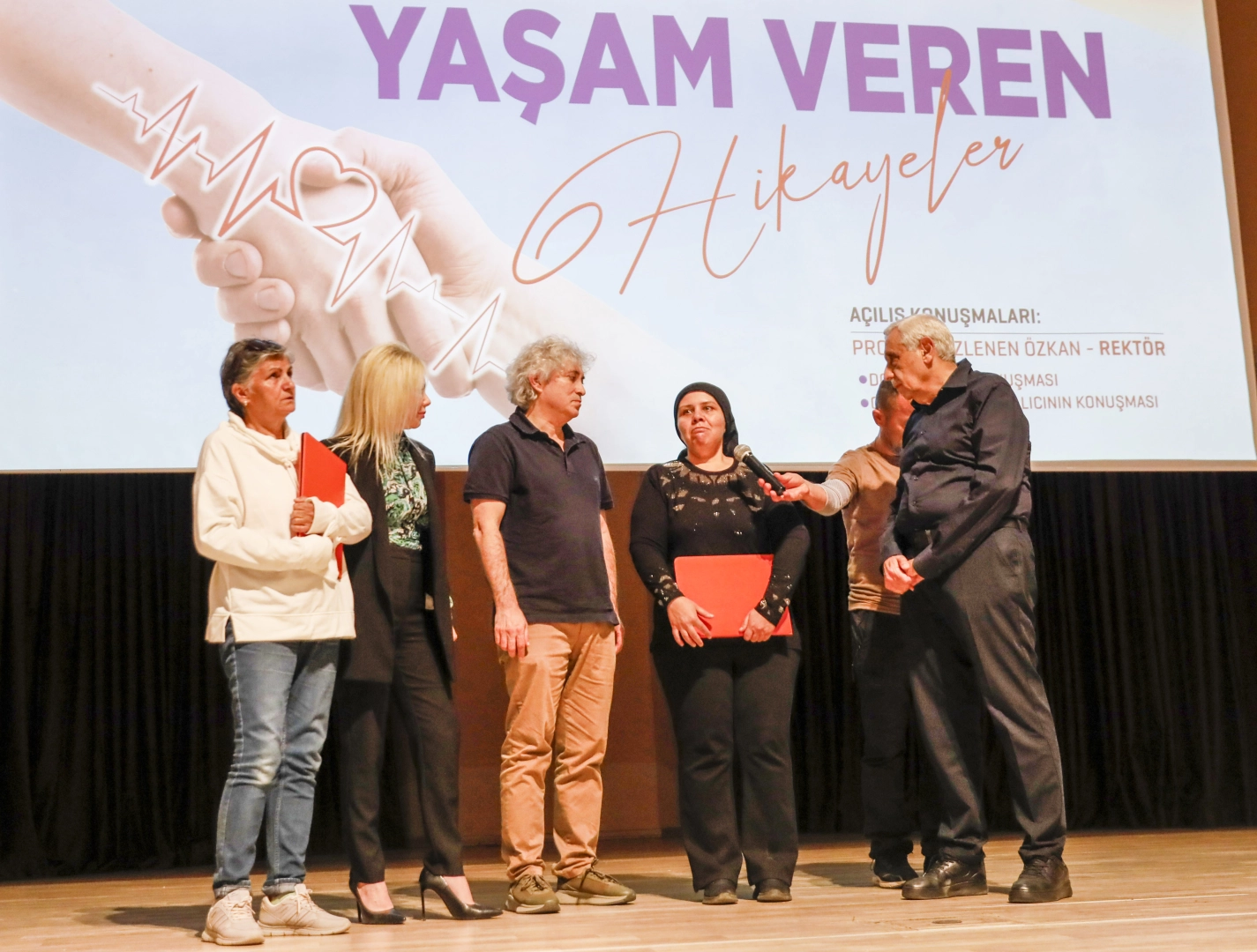 Konuşmaların ardından sahneye, organları bağışlanan kişilerin aileleri çağrılarak teşekkür plaketi verildi. Bu sırada duygu dolu anlar yaşandı. 43 yaşında iş kazası sonucu hayatını kaybeden ve organları bir başkasını umut olan Mimar Bora Dumlupınar'ın annesi Sultan Dumlupınar, uzun süre gözyaşı döktü. Dumlupınar'ı, Rektör Özkan sarılarak teselli etmeye çalıştı. Dumlupınar, "Oğlumu iş kazasında kaybettim. Geride 3 çocuğu kaldı. 6 organını bağışladık. Herkesi organ bağışına davet ediyorum" diye konuştu.