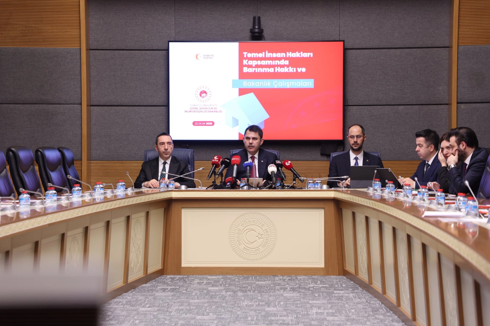 Çevre, Şehircilik ve İklim Değişikliği Bakanı Murat Kurum, Türkiye'de ev sahipliği oranın yüzde 56 olduğunu ifade ederek, "Hedefimiz bunu yüzde 65-70'lere çıkarmak. İsviçre'de ev sahipliği oranı yüzde 43. Almanya'da yüzde 47. Ev sahipliği oranı ülkenin gelişmişliğiyle veya gelişmemişliğiyle alakalı değil. Bir süreç yaşandı. Burayı da görmezden gelmememiz lazım. Orta Doğu'da büyük bir savaş yaşandı. Yani bir ülke yok oldu. Bu ülkeden 4-5 milyon vatandaş geldi ve ensar Türk milletine sığındı. Evimizi açtık, kapımızı açtık. Pandemi oldu. O yetmedi, bir asırda yaşadığımız en büyük felaketi yaşadık. 800 bin ev yıkıldı. Şimdi neticede bu insanlar da ev sahibiydi, değildi, şu an olamadı. Yani o süreçte deprem sebebiyle olamadı. Ve hala Orta Doğu'da yaşanan gelişmeleri hepimiz izliyoruz. Şimdi tüm bunlar ortadayken 'Türkiye Cumhuriyeti Devleti bir şey yapmıyor' demek çok hakkaniyetli bir bakış değil bir kere. Ev sahipliği oranını arttırmalı mıyız? Arttırmalıyız ama bizi Avrupa'yla kıyas ederken Avrupa'da nüfusun artmadığını da ifade etmek lazım. Avrupa yıllarca nüfusu artmayan bir konumda. Avrupa Birliği genelinde baktığımızda bu böyle. Türkiye'de nüfus artışı halen devam ediyor ve biz bu artışın az olmasından da şikayetçiyiz. Yani daha fazla olsun istiyoruz. Dolayısıyla elma ile elmayı kıyaslamak lazım" diye konuştu.