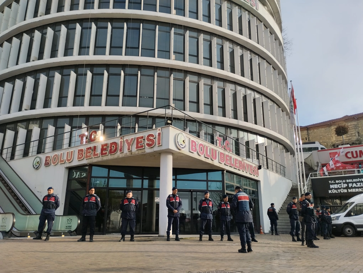 Mutlu YUCA/BOLU, (DHA)- BOLU Belediye Başkanı Tanju Özcan ile Belediye Başkan Yardımcısı Süleyman Can’ın tutuklandığı ‘İcbar suretiyle irtikap’ soruşturması kapsamında sabah erken saatlerde belediye binasına gelen jandarma ekipleri tarafından arama yapıldı. Soruşturma kapsamında 3 kişinin gözaltına alındığı bildirildi.