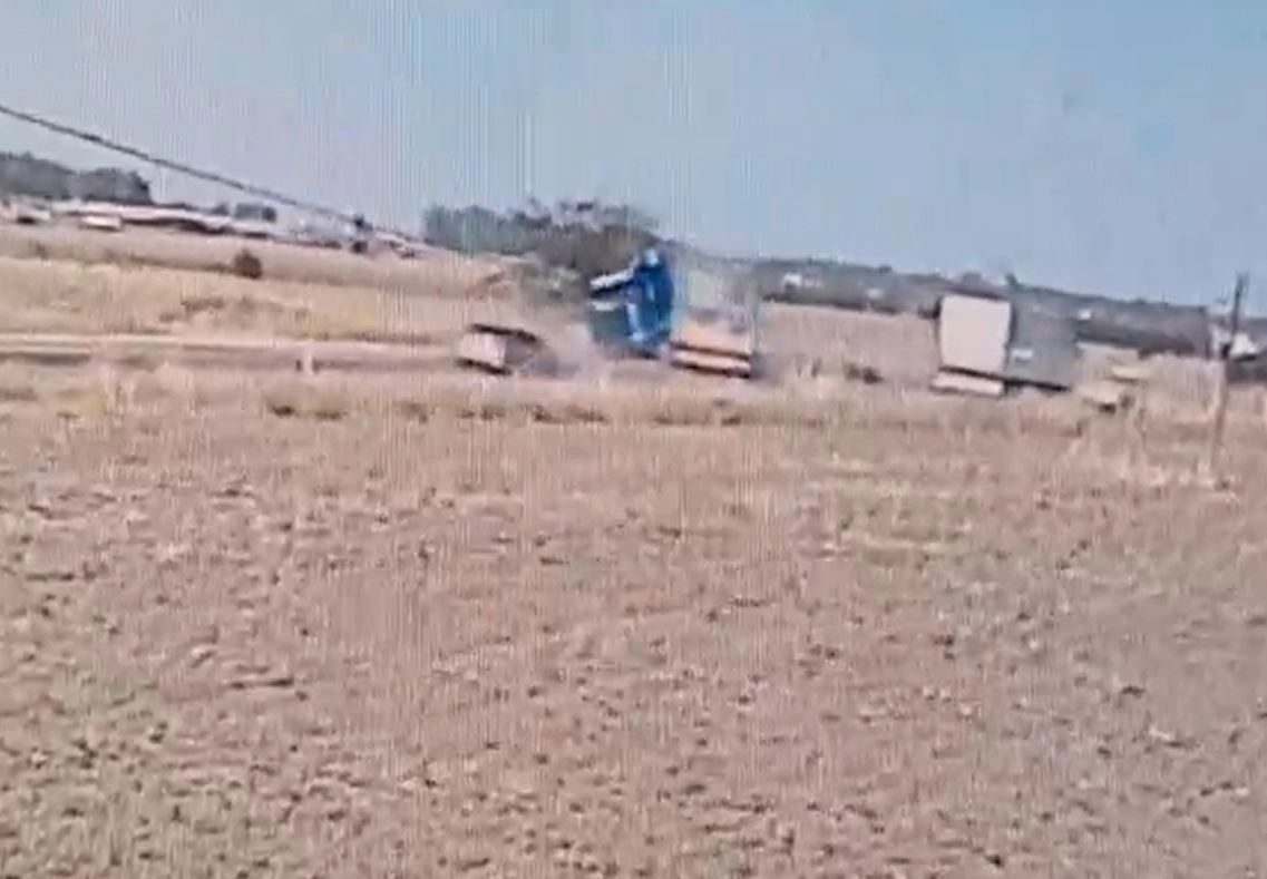 Kazaya karışan TIR'ın sürücüsü M.T., jandarma ekipleri tarafından gözaltına alınırken, kaza anının güvenlik kamerası görüntüleri ortaya çıktı. Görüntülerde, TIR’ın önündeki aracı sollamak için yan şeride geçtiği, fren yapmaya çalışmasına rağmen karşıdan gelen otomobille çarpıştığı anlar yer aldı. (DHA)