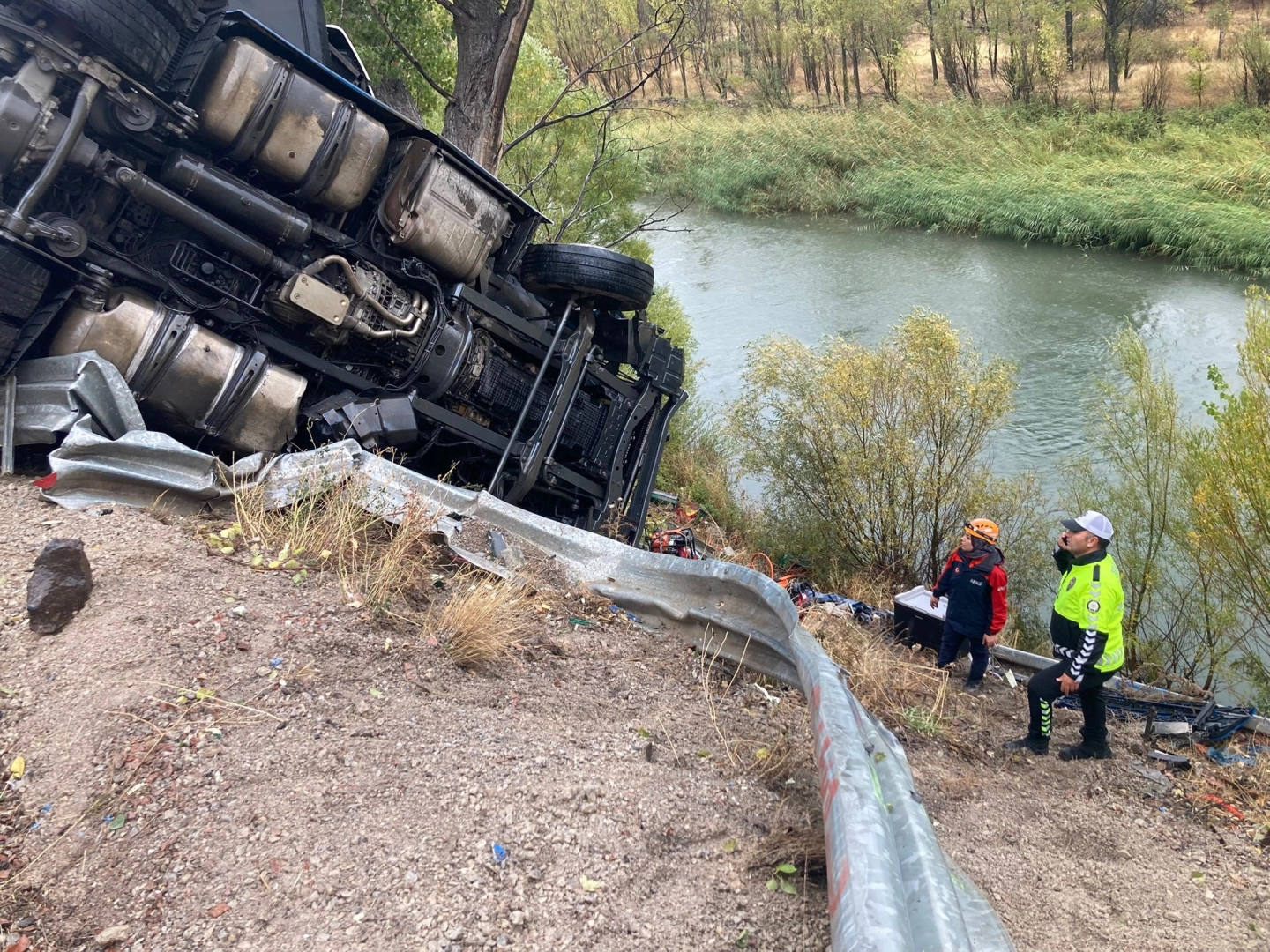 Uğur YİĞİT/SİVAS, (DHA)- SİVAS'ın Koyulhisar ilçesinde devrilen sebze yüklü TIR'ın şoförü Y.Y. yaralandı. Y.Y. sıkıştığı yerden AFAD ve itfaiye ekiplerinin yaklaşık 2 saatlik çalışmasıyla kurtarıldı.Kaza, saat 15.00 sıralarında D-100 kara yolu Aşağıkale Mahallesi Tünel mevkiinde meydana geldi. Sağanak yağış nedeniyle Y.Y.’nin kontrolünü yitirdiği 31 AKZ 263 plakalı sebze yüklü TIR bariyerlere çarparak Kelkit Çayı kenarına devrildi. İhbar üzerine kaza yerine sağlık, polis, AFAD ve itfaiye ekipleri sevk edildi. Devrilen TIR'da sıkışan Y.Y. için AFAD ve itfaiye ekipleri kurtarma çalışması başlattı. Yaklaşık 2 saat süren çalışmanın ardından Y.Y. kurtarılıp, ambulansla Koyulhisar Devlet Hastanesi’ne kaldırıldı. Y.Y.’nin sağlık durumunun iyi olduğu öğrenildi. Kazayla ilgili inceleme başlatıldı. (DHA)