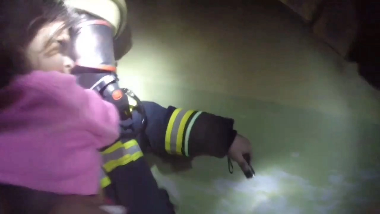 Diyarbakır'ın Bağlar ilçesinde 5 katlı apartmanın son katında çıkan ve 13 kişinin dumandan etkilendiği yangında itfaiyenin müdahale anları, kask kamerasına yansıdı. Görüntülerde ayrıca bir çocuğun kurtarılma anları da yer aldı. (DHA)