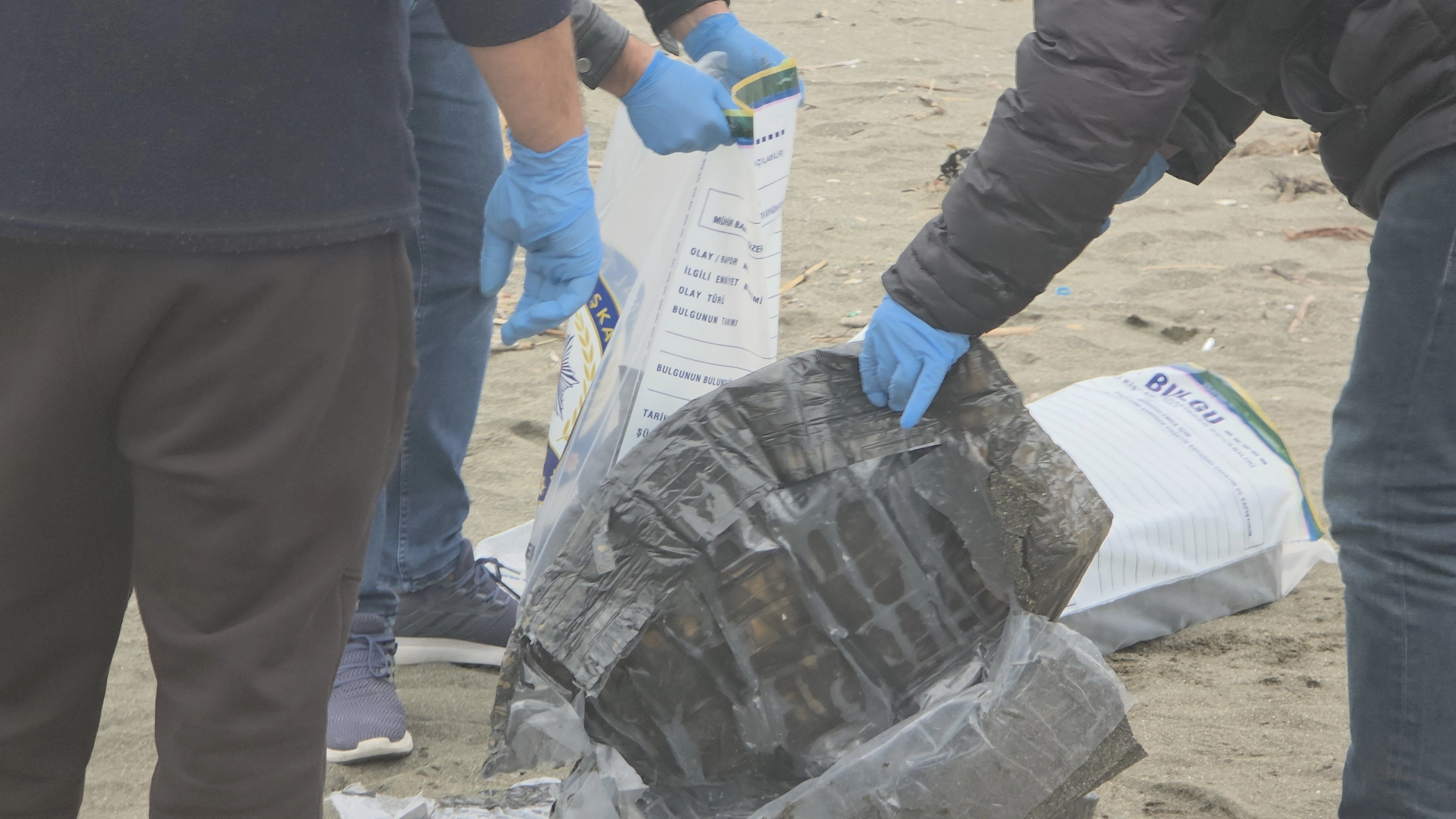 Alican GÜMÜŞ/ HATAY, (DHA)- HATAY'ın Samandağ ilçesinde dalgaların sahile sürüklediği çuvalın içerisinden uyuşturucu madde çıktı. Olayla ilgili inceleme başlatıldı.