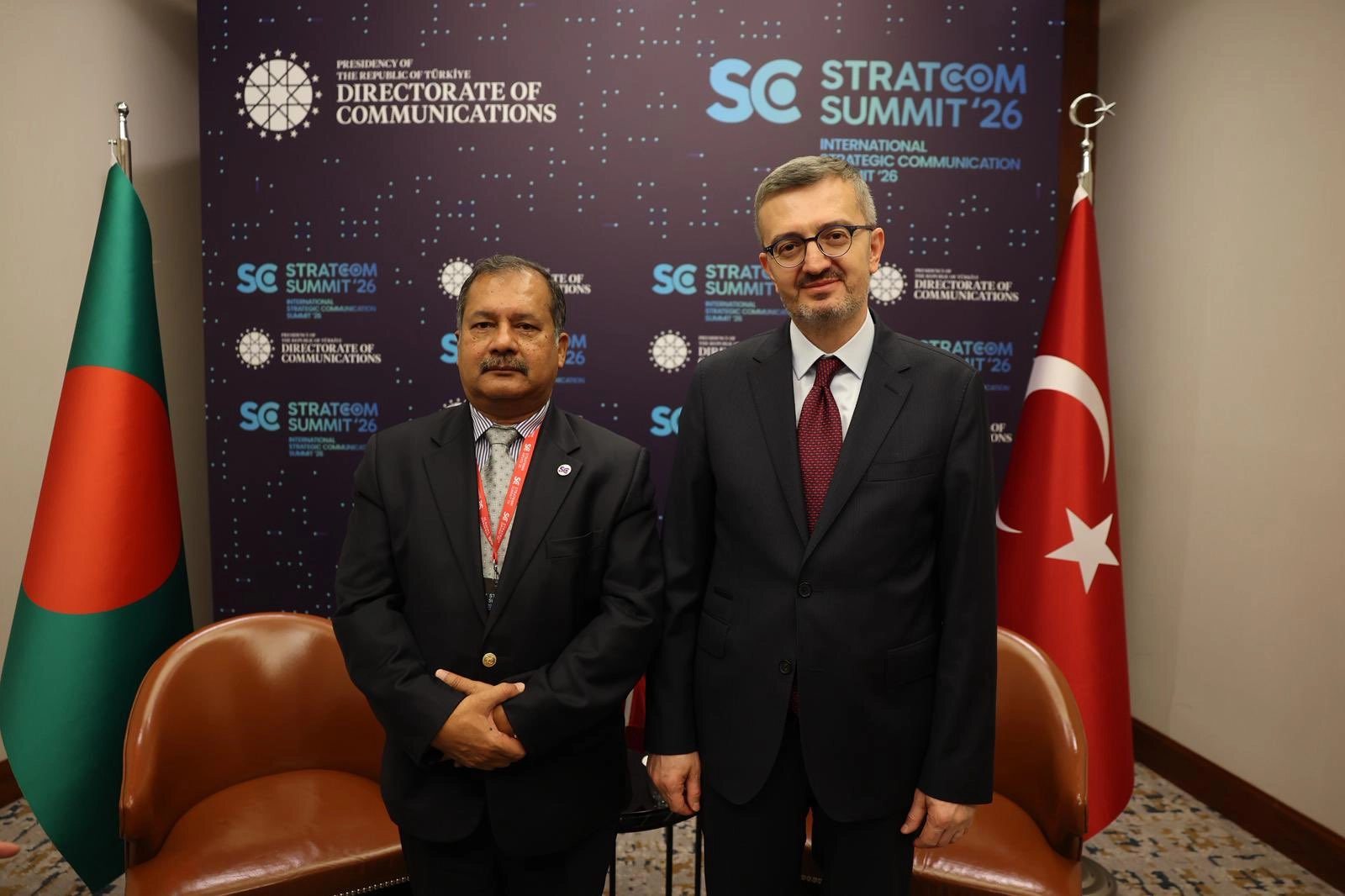 İletişim Başkanı Burhanettin Duran, sanal medya üzerinden yaptığı paylaşımda, STRATCOM Zirvesi marjında yapılan görüşmeler kapsamında, Bangladeş Enformasyon ve Yayıncılık Bakanı Zahir Uddin Swapon ile bir araya geldiğini bildirdi. Duran paylaşımda, “Görüşmemizde, medya ve iletişim alanında karşılıklı iş birliği imkânları, kamuoyunun doğru bilgilendirilmesi ve küresel ölçekte iletişim ağlarının güçlendirilmesi konularını ele aldık. Sayın Cumhurbaşkanımızın liderliğinde, farklı coğrafyalarla kurduğumuz çok boyutlu iletişim iş birliklerini geliştirmeye ve ortak çalışmalarımızı çeşitlendirmeye önem veriyoruz. Türkiye ile Bangladeş arasındaki dostane ilişkilerin, iletişim alanında da yeni ve kalıcı iş birlikleriyle daha ileri taşınacağına inanıyorum” ifadelerine yer verdi.