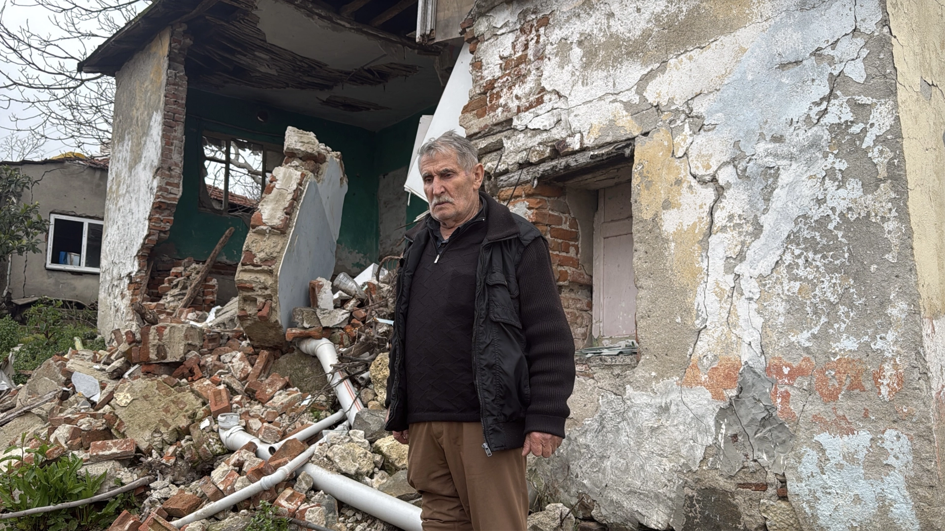 Çınarcık ilçesinde yaşayan İrfan Güngör’ün 2 katlı evinin bir kısmı, 3 ay önce, 10 metre mesafedeki inşaat alanında meydana gelen toprak kayması nedeniyle yıkıldı. Eşiyle birlikte, evli olan çocuklarının yanında yaşamaya başlayan Güngör’ün evi, bu süre zarfında yağan yağmurun da etkisiyle tamamen yıkılarak kullanılamaz hale geldi. 17 Ağustos 1999 Marmara Depremi’nde ayakta kalan evinin, bitişiğinde başlatılan inşaat kazısının ardından zarar görmeye başladığını söyleyen İrfan Güngör, 3 metre derinliğinde kazı yapıldığını, kazıdan sonra toprağın kaymaya başladığını ve önlem alınmadığını söyledi. İstinat duvarının da geç yapıldığını belirten Güngör, şikayetçi olmasına rağmen, inşaat firması tarafından zararının hala karşılanmadığını ifade etti.