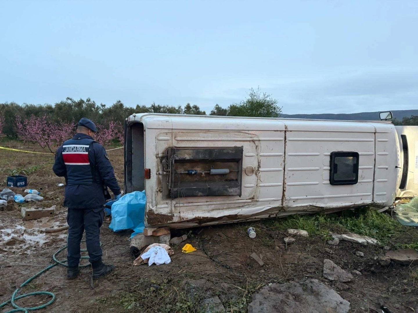 Kaza, saat 05.00 sıralarında İznik-Orhangazi kara yolu Çakırca Mahallesi mevkisinde meydana geldi. İznik’te faaliyet gösteren bir işletmede çalışan işçileri taşıyan Sedat Akkoyun (55) yönetimindeki 16 H 1803 plakalı minibüs, sürücüsünün direksiyon kontrolünü kaybetmesi sonucu savrularak takla atıp, yol kenarındaki tarlaya devrildi. İhbarla kaza yerine jandarma ve çok sayıda sağlık ekibi sevk edildi. Ekiplerin yaptığı kontrolde, aracın altında kalan işçi Melik Bingöl’ün hayatını kaybettiği belirlendi. Yaralanan 12 kişi ise ambulanslarla çevre hastanelere kaldırılarak tedaviye alındı.