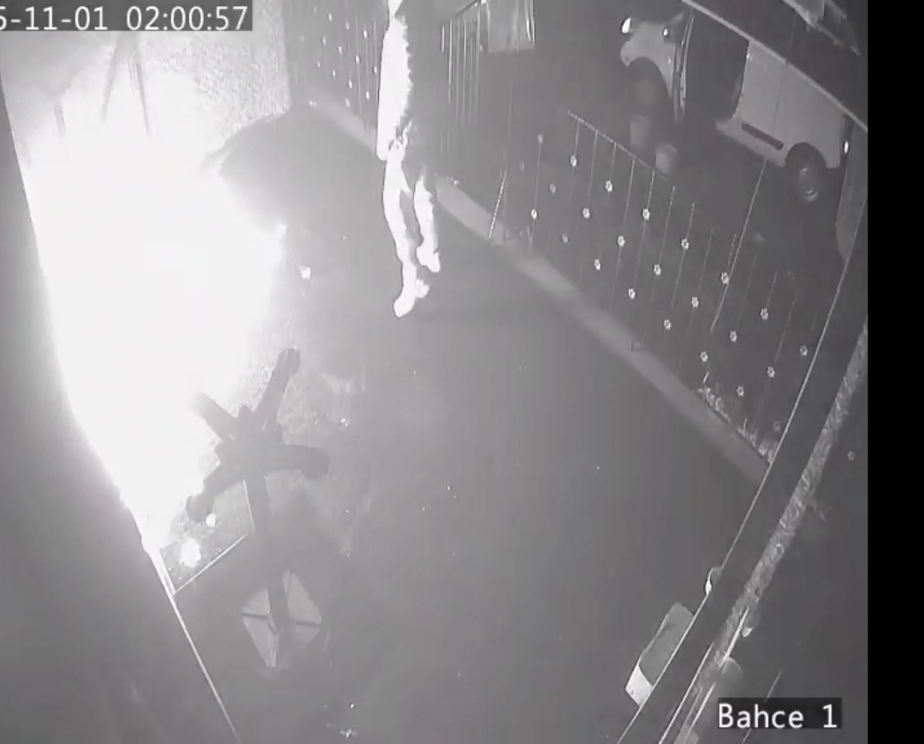 Olayın ardından aracına binen Engin T. olay yerinden uzaklaştı. Yaklaşık yarım saat sonra dükkan önüne yeniden gelen Engin T., aracından inerek dükkanın girişine 3 kez yanıcı madde attı. Engin T. ardından alevlere teslim olan dükkanın giriş kapısını tekmeledi. Halıların alev aldığını ve alevlerin dükkana ulaştığını gören çevredeki vatandaşlar kovalarla su dökerek yangını söndürdü. Olay anı güvenlik kamerasına saniye saniye yansıdı. Olayın ardından aracına binen Engin T. hızla kaçmaya başladı.