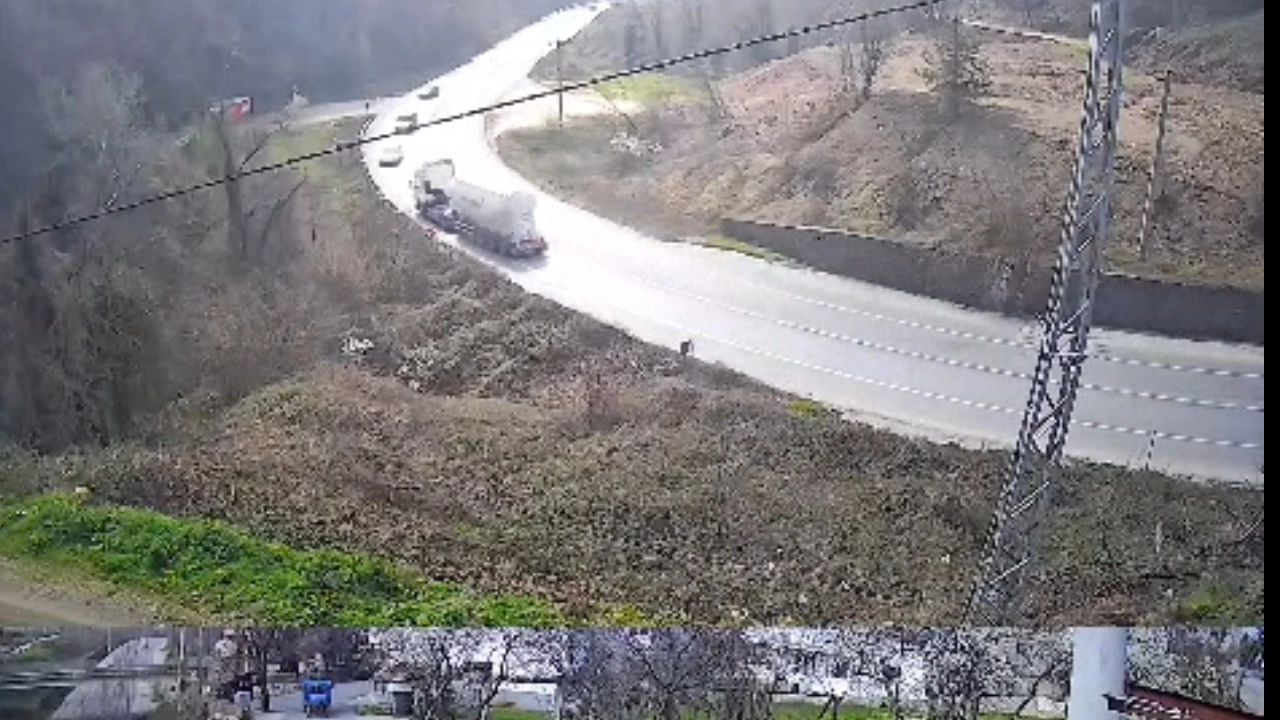 Kaza anı, çevredeki evin güvenlik kamerasına yansıdı. (DHA)