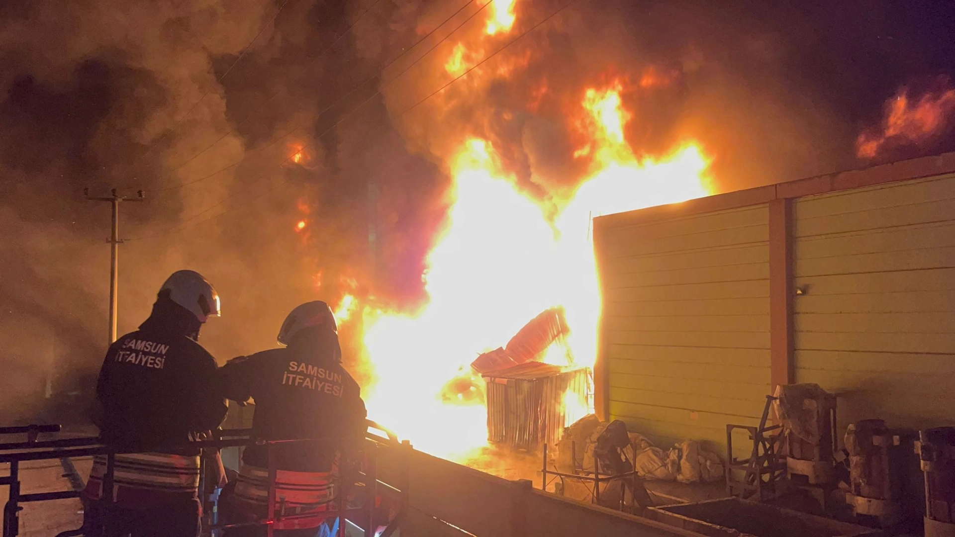 Emre ŞAHİNOL/ BAFRA(Samsun), (DHA)- SAMSUN'un Bafra ilçesinde bir geri dönüşüm fabrikasında yangın çıktı. İtfaiye ekipleri yangına müdahaleyi sürdürüyor.